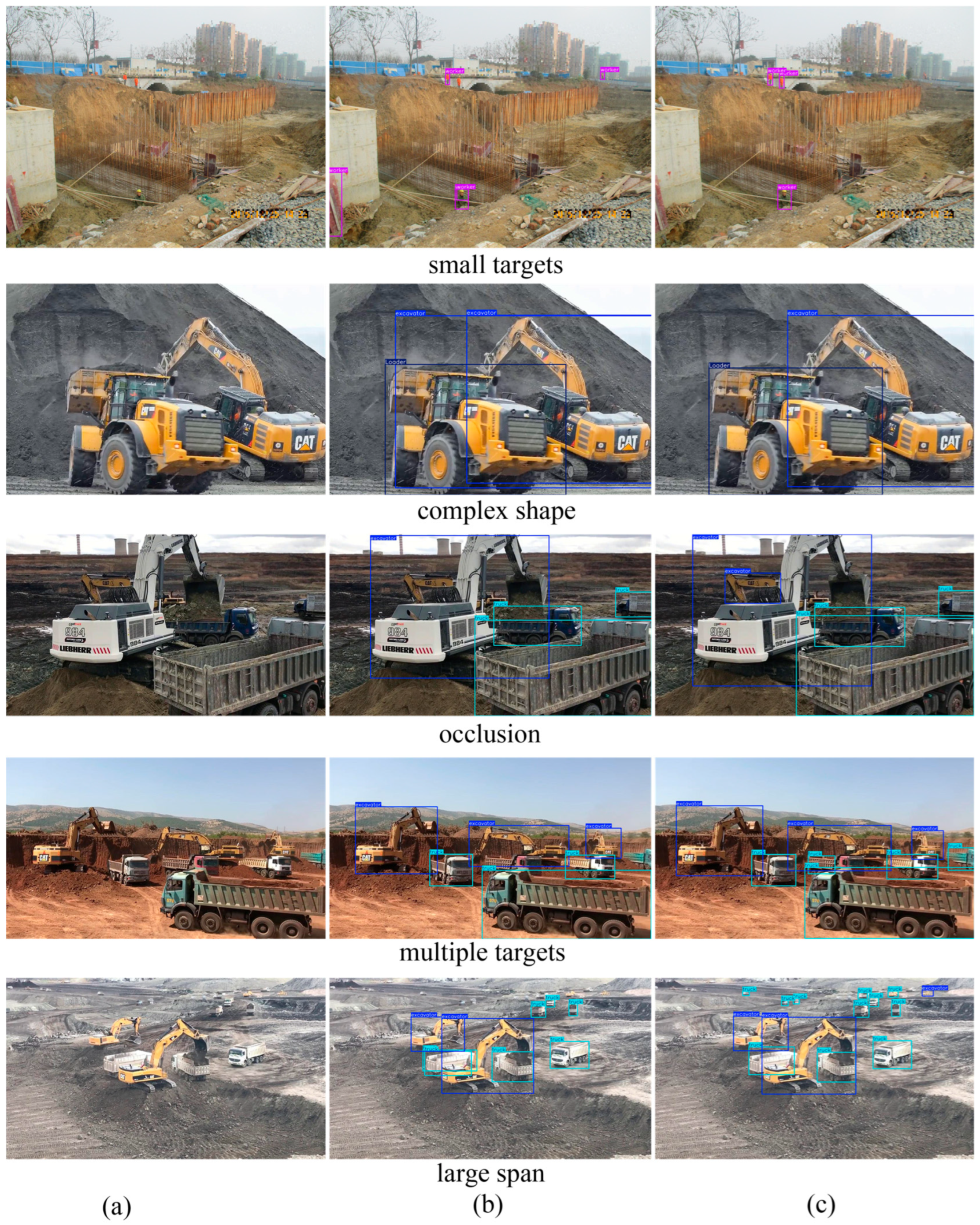 The shallow layers contain less semantic information but are rich in details, exhibiting more distinct boundaries and less distortion. Additionally, deeper layers encapsulate abundant material semantic information. Within the framework of object detection algorithms, the neck network constructs a Path Aggregation Network. It incorporates rich semantic features through feature fusion and multi-scale detection methods, aiming to minimize the loss of semantic feature information. However, mining scenarios present unique challenges that severely test the capabilities of traditional neck network architectures. In open pit mining operations, the neck network must effectively fuse features across extreme scale variations. Small distant workers (often appearing as only a few pixels) coexist with large engineering vehicles (trucks, excavators) that occupy significant portions of the image. Additionally, complex backgrounds characterized by rock faces, shadows, and similar-colored equipment create ambiguous boundaries between targets and backgrounds. This requires the neck network to preserve both fine-grained spatial details from shallow layers and rich semantic information from deep layers. These challenging conditions require neck networks to achieve effective multi-scale feature fusion while maintaining computational efficiency suitable for real-time safety monitoring applications.
