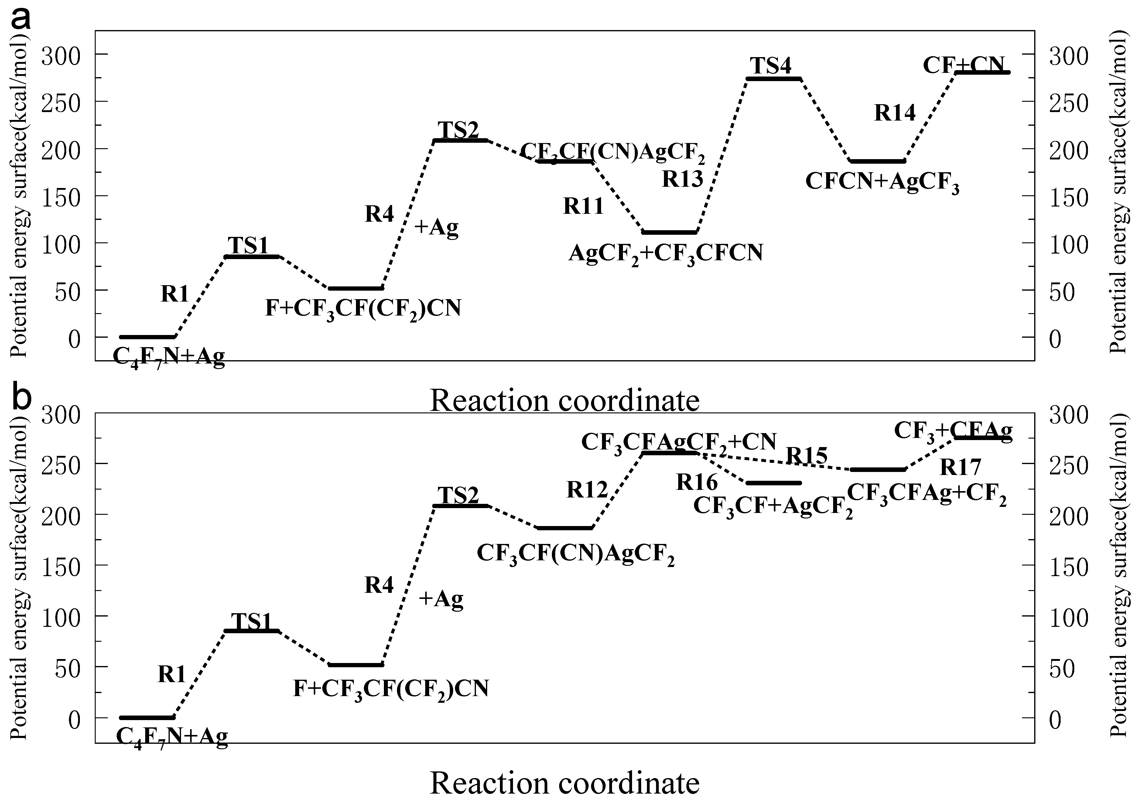 | 3 | C4F7N + Ag → TS11 → C3F4N + CF3Ag |