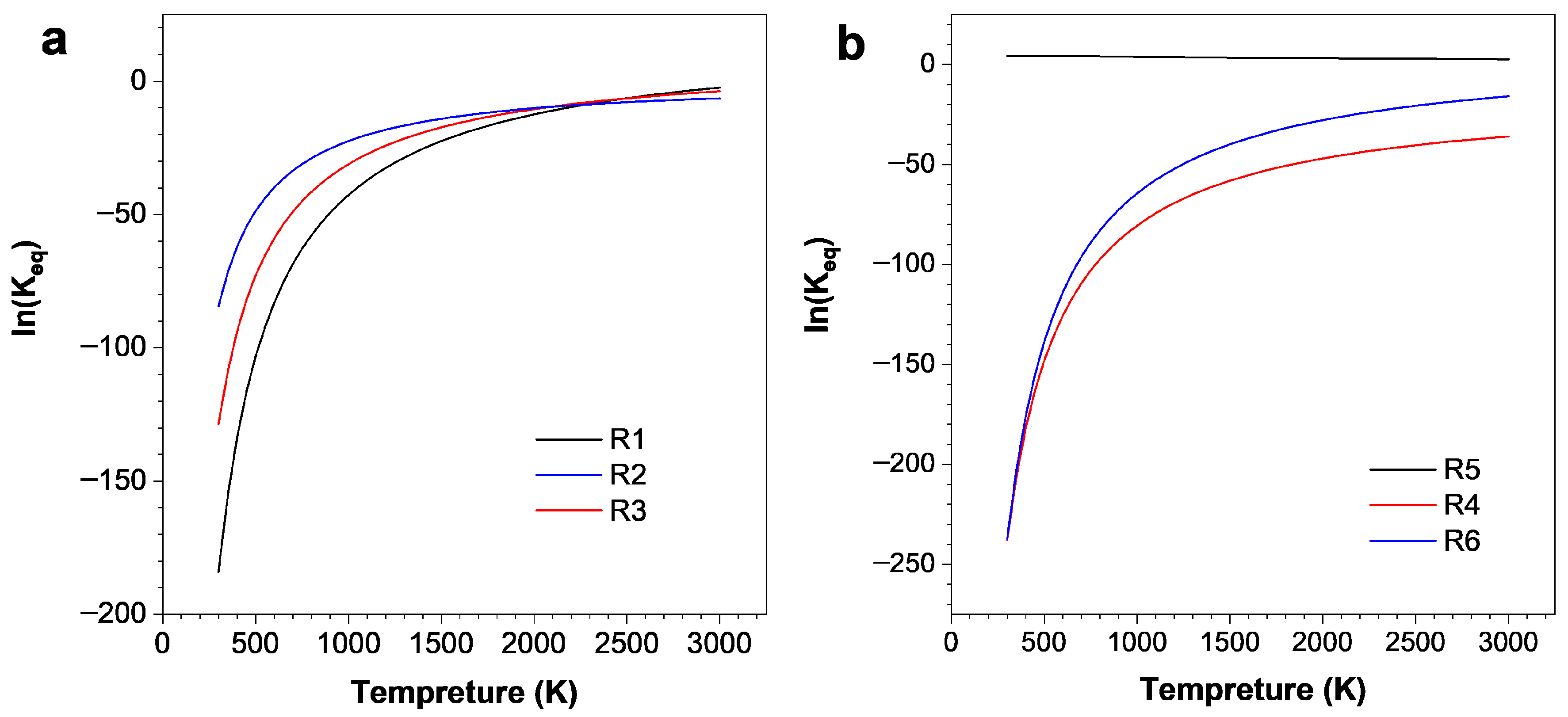 - The reaction equilibrium constants (Keq) were calculated, revealing temperature-dependent behavior, with ln(Keq) values between 300 K to 3000 K. The most possible decomposition pathway of C4F7N under Ag vapor is R1 → R5.