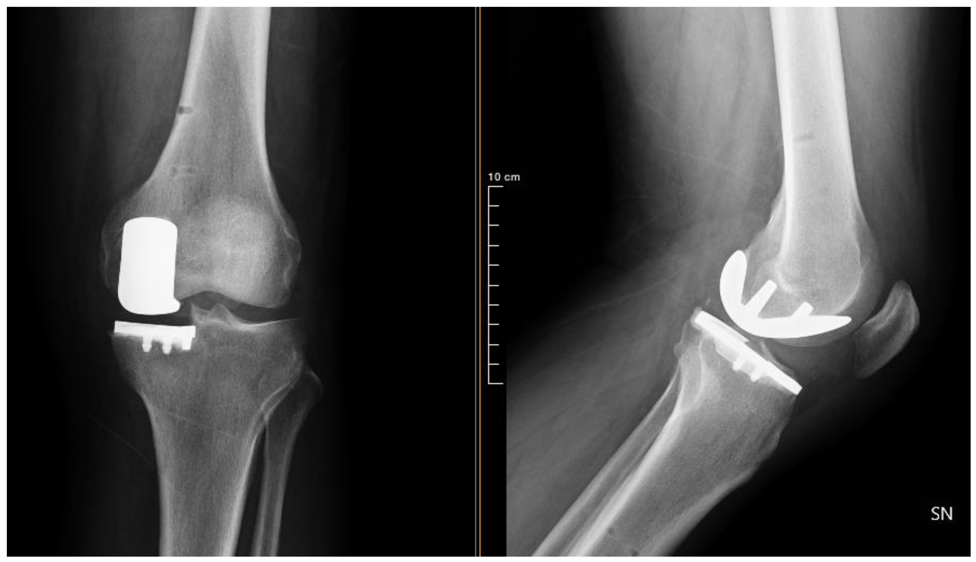 - McDowell, M.; Park, A.; Gerlinger, T.L. The Painful Total Knee Arthroplasty. Orthop. Clin. N. Am. 2016, 47, 317–326. [Google Scholar] [CrossRef] [PubMed]