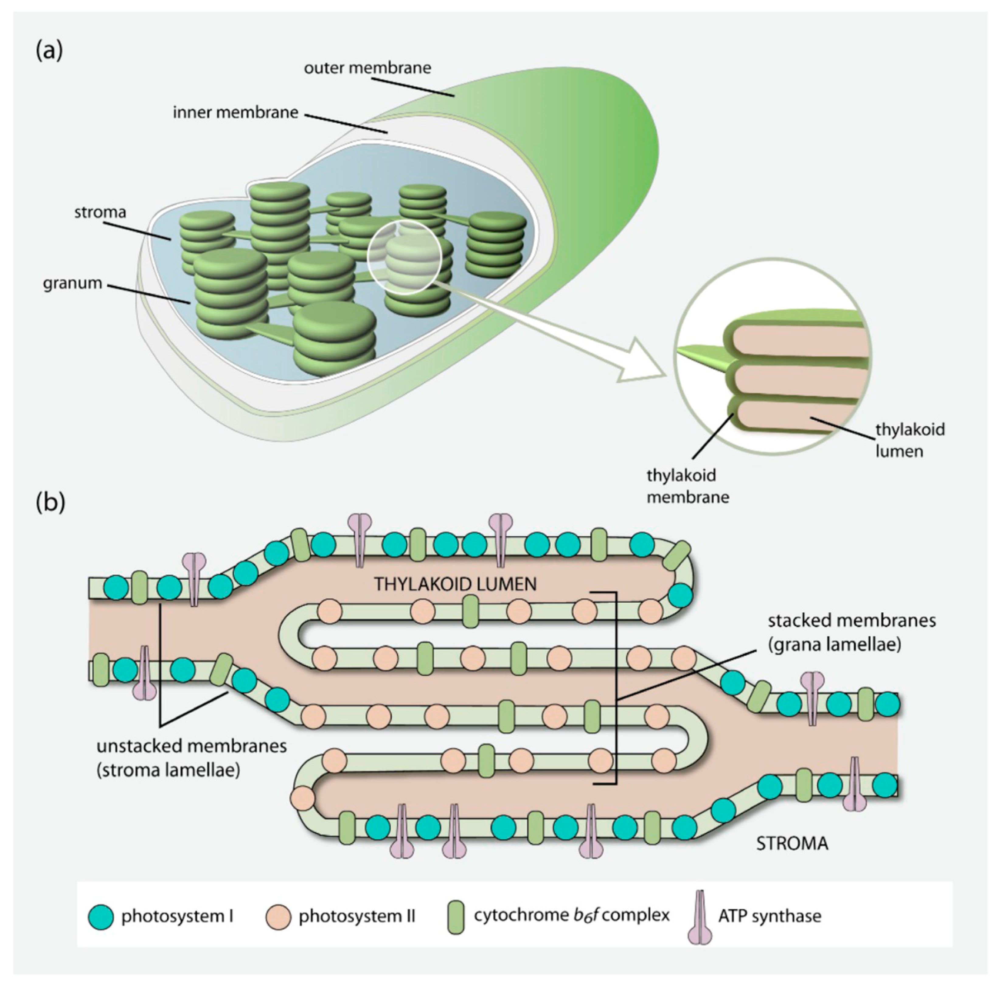 - Whitmarsh, J. Govindjee The Photosynthetic Process. In Concepts in Photobiology: Photosynthesis and Photomorphogenesis; Singhal, G.S., Renger, G., Sopory, S.K., Irrgang, K.-D., Govindjee, Eds.; Springer: Dordrecht, The Netherlands, 1999; pp. 11–51. [Google Scholar] [CrossRef]