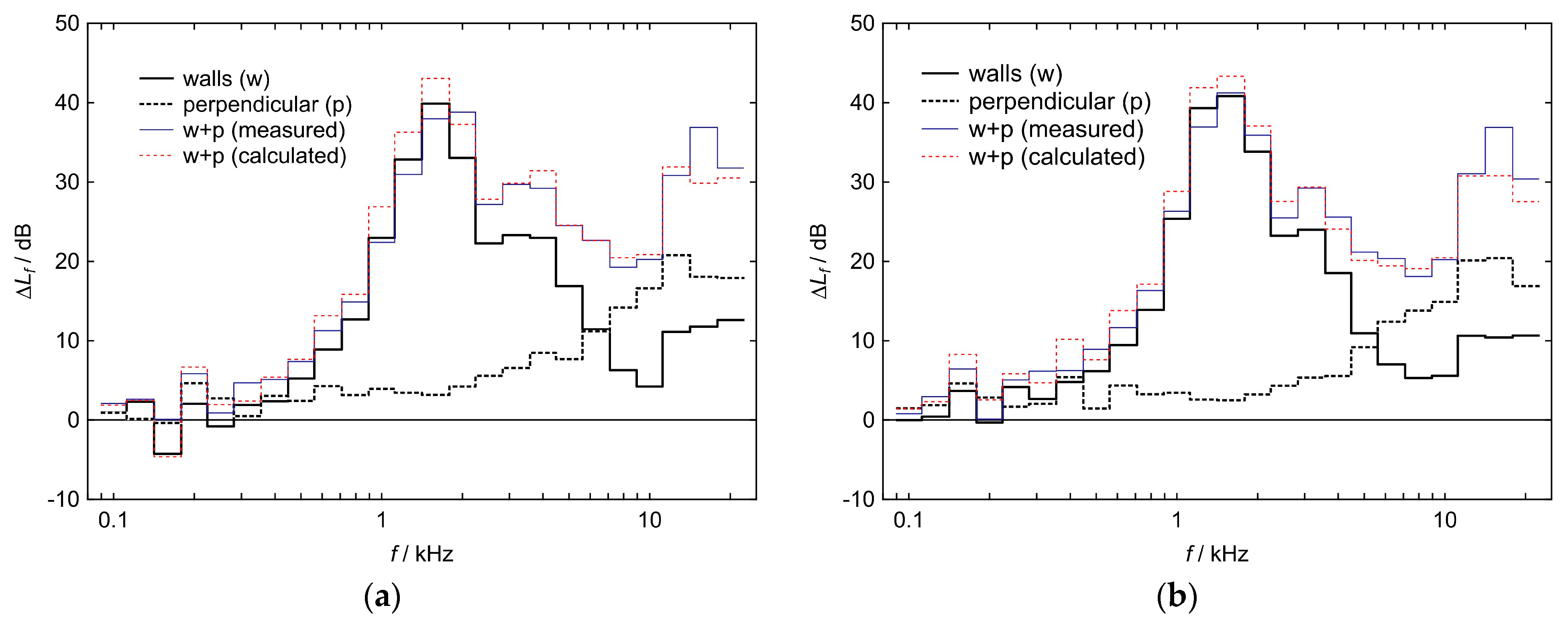 - Beranek, L.L. Sound in enclosures. In Acoustics; Acoustic Society of America: New York, NY, USA, 1993; pp. 285–331. [Google Scholar]
