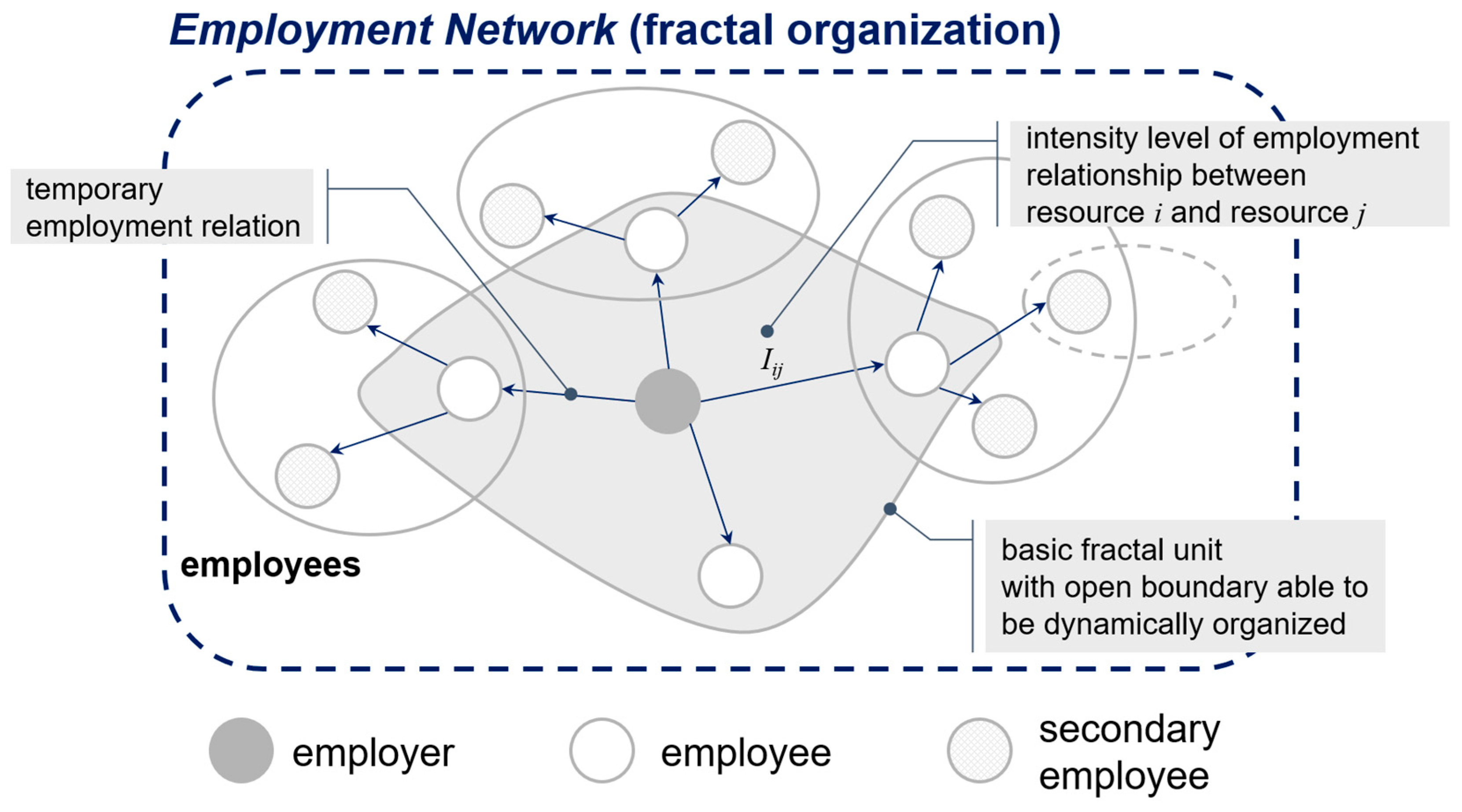 - Shin, M. Employment contract-based management model of production resources on relation-driven fractal organization. J. Korean Inst. Ind. Eng. 2013, 39, 278–289. [Google Scholar]