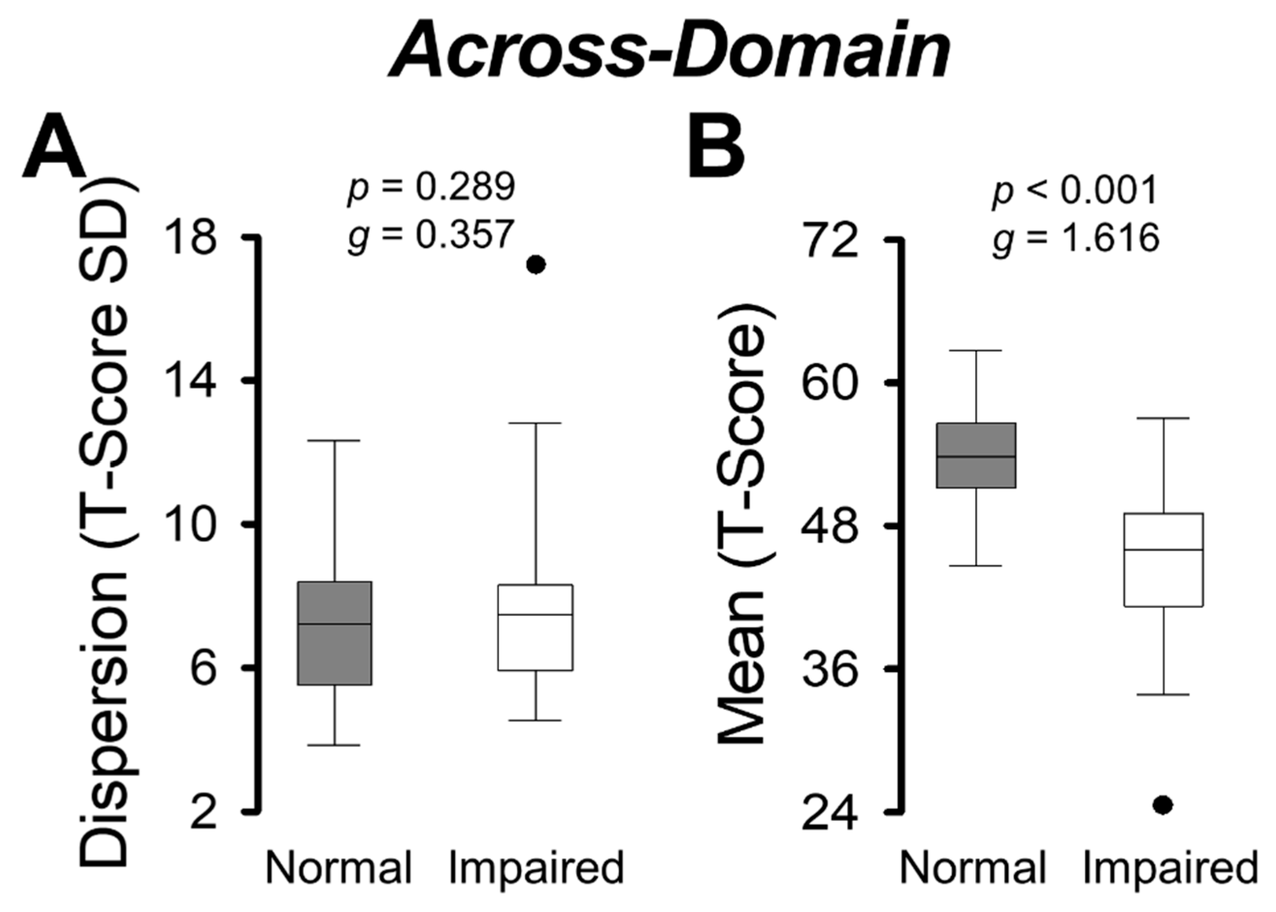 3.3. Group Comparisons on Across-Domain Dispersion and Mean