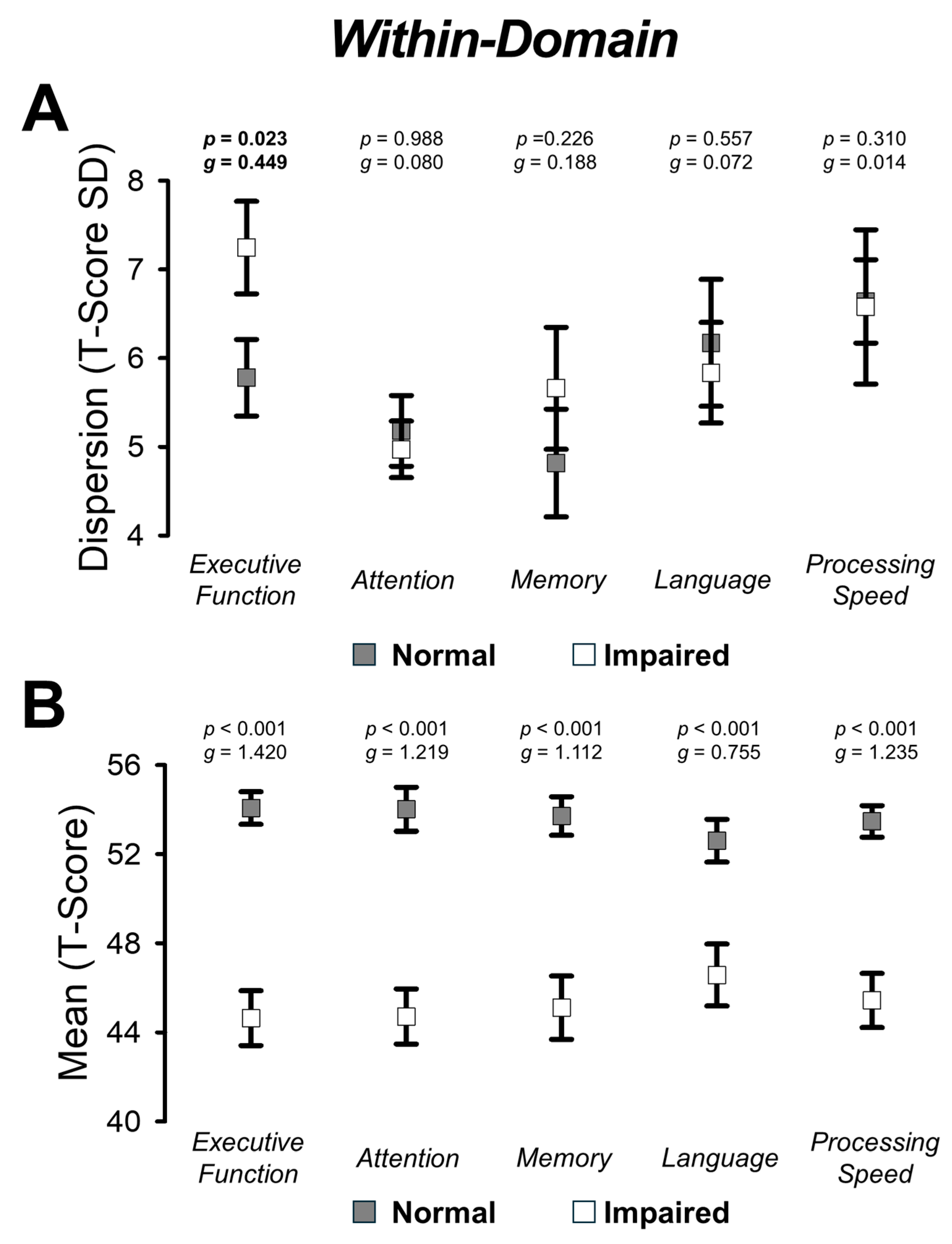 3.4. Group Comparisons on Within-Domain Dispersion and Mean