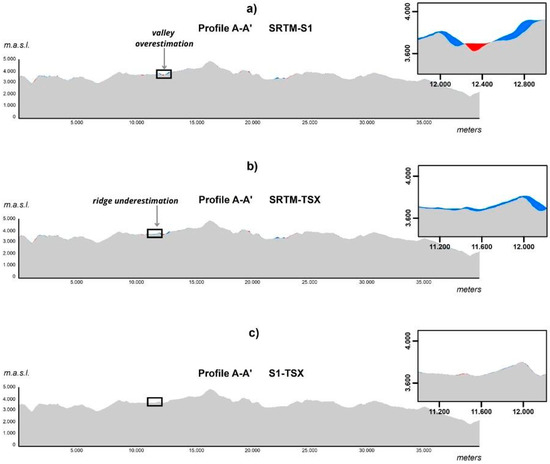 3.2. Comparison of DEM-S1 and DEM-TSX Profiles with SRTM and LiDAR Reference DEMs