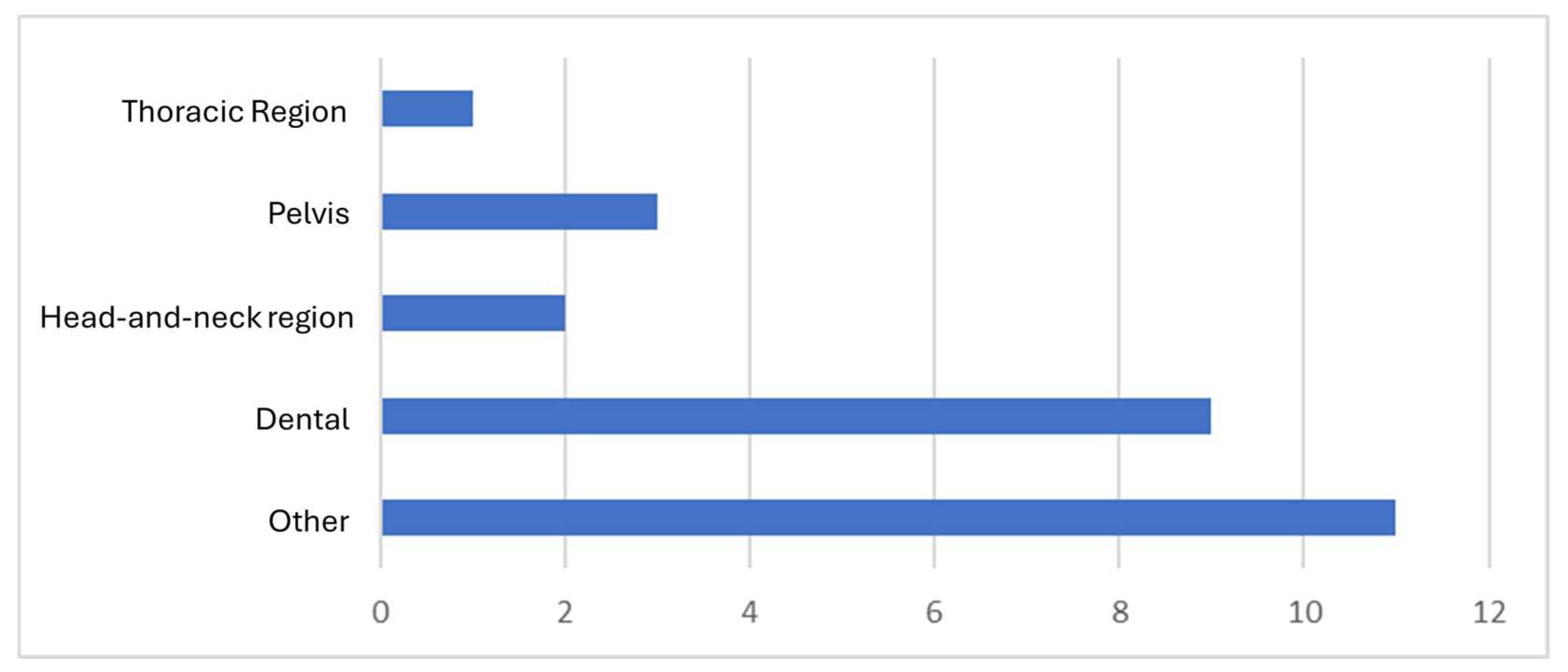 - Anatomical region of interest: indication of the anatomical region on which the imaging is focused (e.g., dentition, pelvis, chest, etc.);