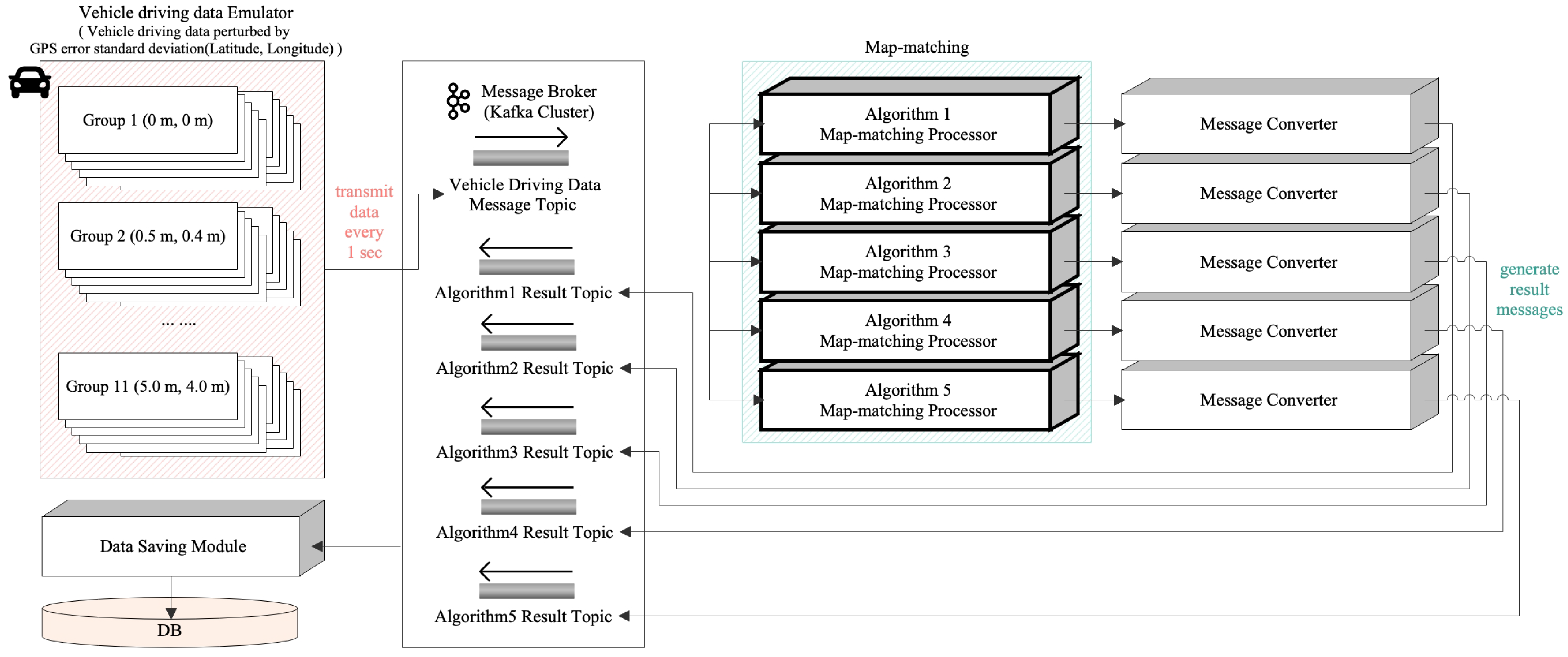 These limitations suggest several directions for future research. One direction is to evaluate the algorithms in additional cities and more diverse road environments to examine their robustness under different geometric layouts and GNSS conditions. Another important direction for future research is to extend the current framework to include probabilistic or learning-based map-matching methods that can adapt to non-Gaussian GPS errors and heterogeneous road-network structures. The Kafka-based architecture used in this study also enables future experiments that explicitly analyze end-to-end latency, throughput, and message-loss scenarios, providing deeper insight into real-world operational reliability. Finally, future work may explore hybrid designs that combine infrastructure-side map-matching with lightweight onboard priors, as well as the incorporation of emerging NR-positioning signals and semantic map cues, to support more accurate lane-level SPaT association while maintaining the cost advantages of SD-map-based autonomous mobility systems.