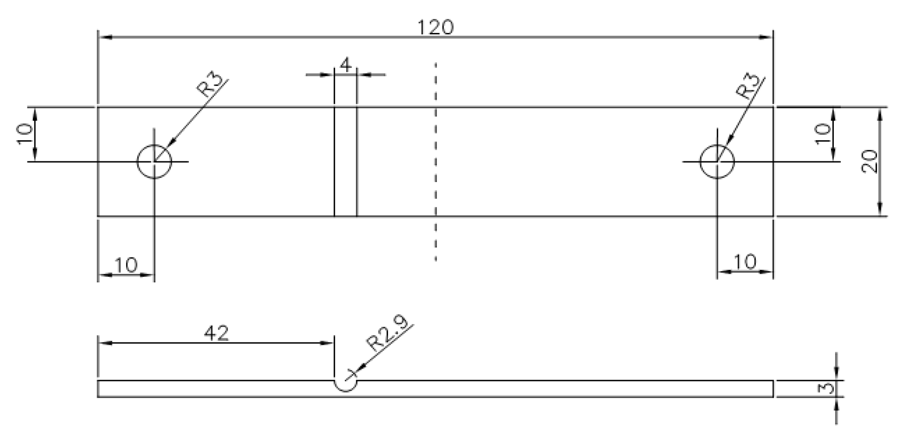 The geometric dimensions of the notched plate are illustrated in