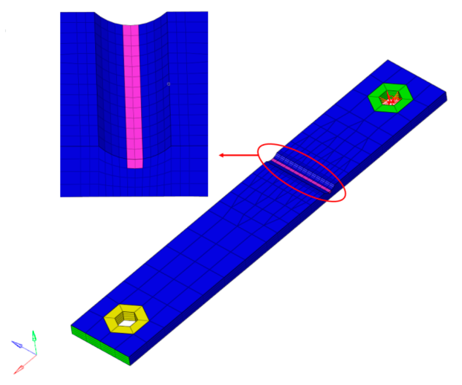 3.1. Finite Element Model of Notched Plate
