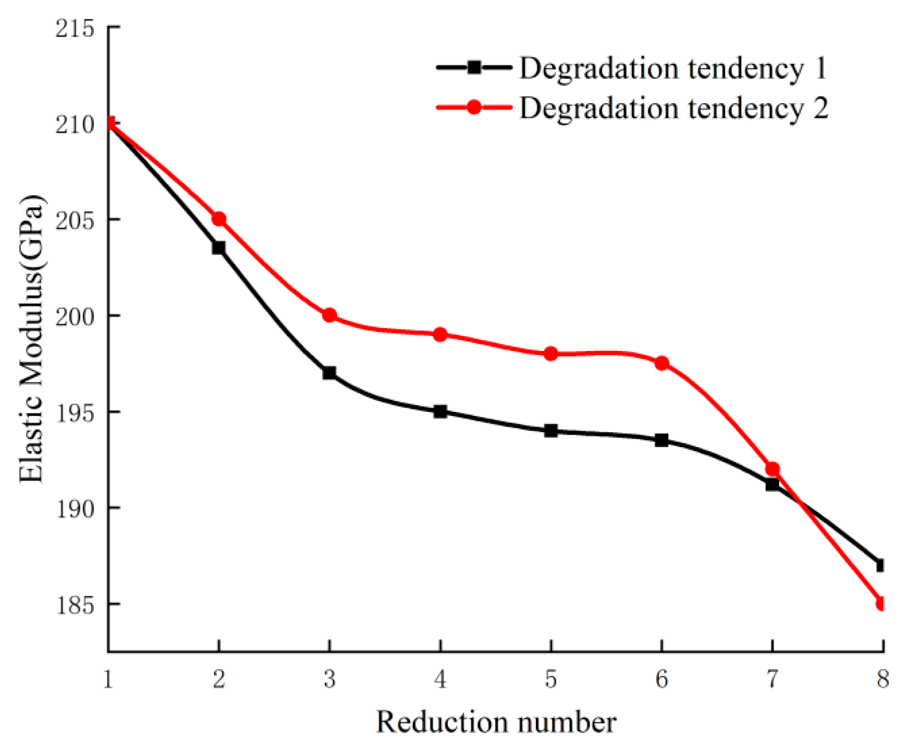8] proposed a fatigue damage model capable of simultaneously characterizing the degradation of both stiffness and strength properties, and conducted stiffness-lowering calculations with experimental validation under variable-amplitude cyclic loading. Pakdel and Mohammadi [