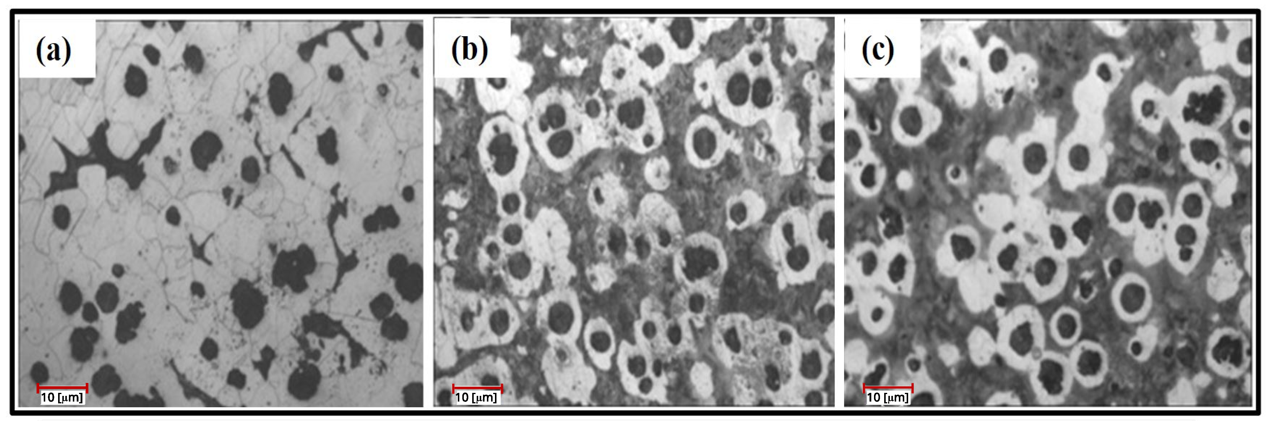 - Sckudlarek, W.; Krmasha, M.N.; Al-Rubaie, K.S.; Preti, O.; Milan, J.C.; da Costa, C.E. Effect of austempering temperature on microstructure and mechanical properties of ductile cast iron modified by niobium. J. Mater. Res. Technol. 2021, 12, 2414–2425. [Google Scholar] [CrossRef]