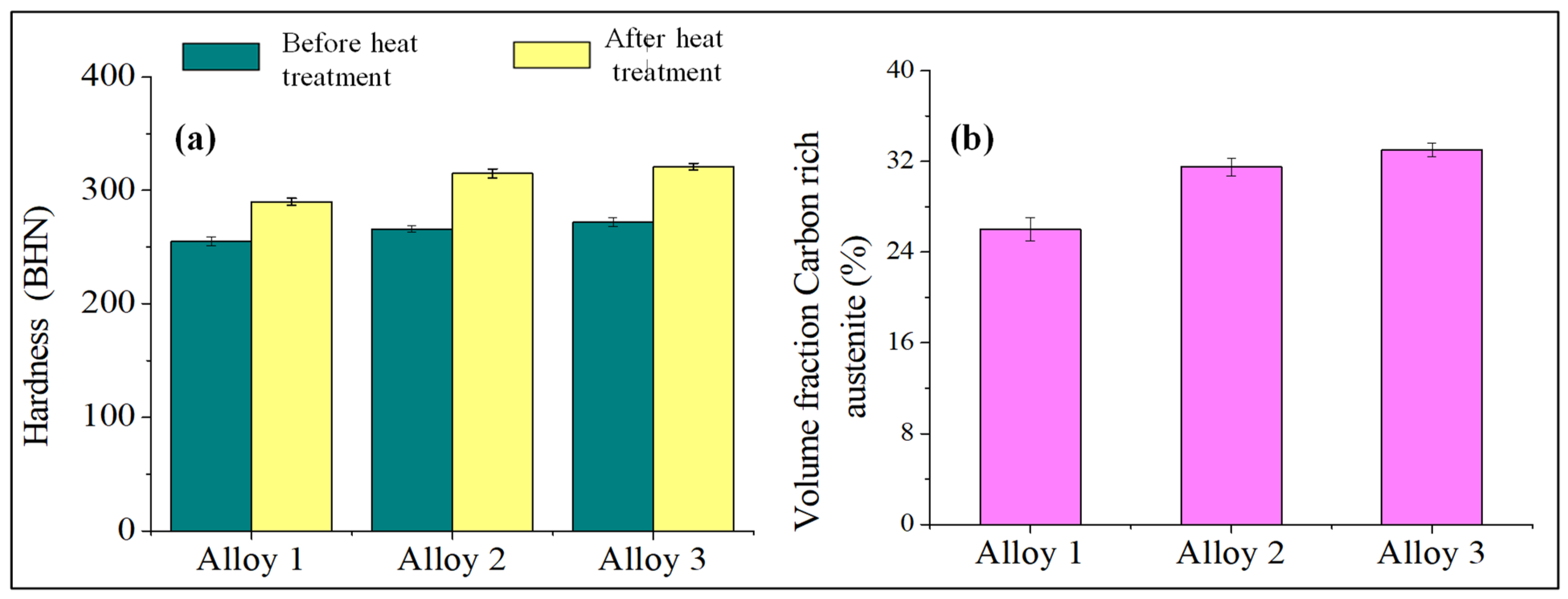 - Sharma, S.; Hegde, A. An Analysis of the Amount of Retained Austenite in Manganese Alloyed Austempered Ductile Iron. Mater. Res. 2021, 24, e20210301. [Google Scholar] [CrossRef]
