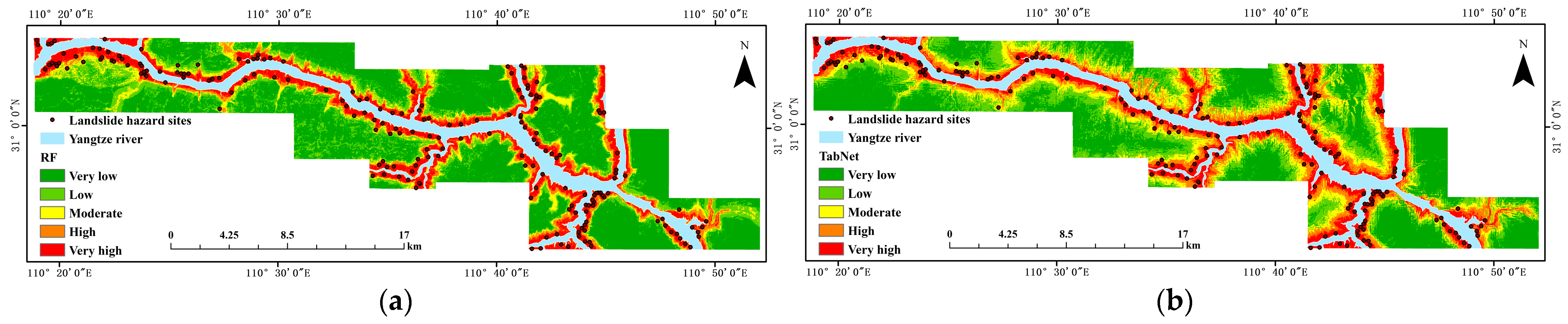 - Song, Y.; Li, Y.; Zou, Y.; Wang, R.; Liang, Y.; Xu, S.; He, Y.; Yu, X.; Wu, W. Synergizing multiple machine learning techniques and remote sensing for advanced landslide susceptibility assessment: A case study in the Three Gorges Reservoir Area. Environ. Earth Sci. 2024, 83, 227. [Google Scholar] [CrossRef]