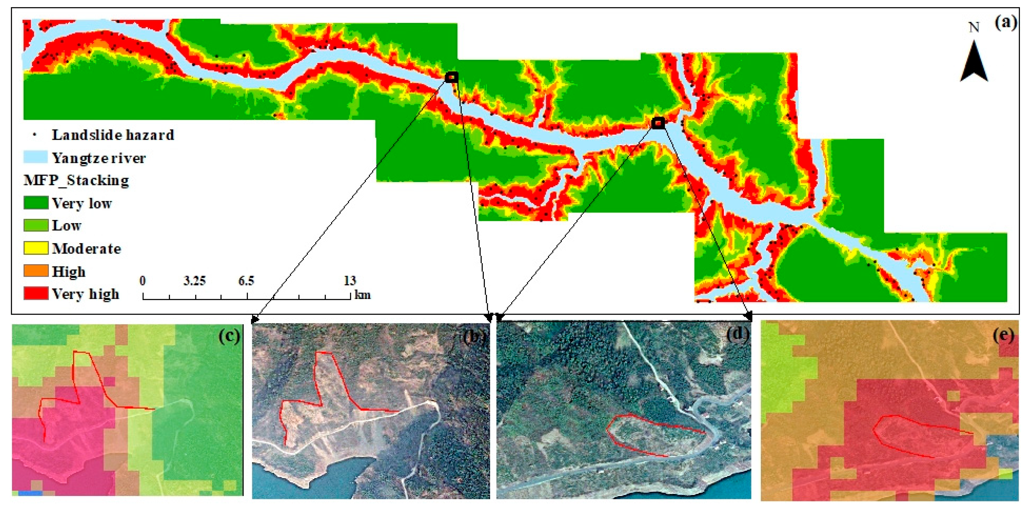 - Wang, Z.; Wen, T.; Chen, N.; Tang, R. Assessment of Landslide Susceptibility Based on the Two-Layer Stacking Model—A Case Study of Jiacha County, China. Remote Sens. 2025, 17, 1177. [Google Scholar] [CrossRef]