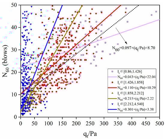 Lunne et al. (1997) [21] adopted the definition of Ic given in Equation (4) and established a correlation between the SPT-N and CPT: