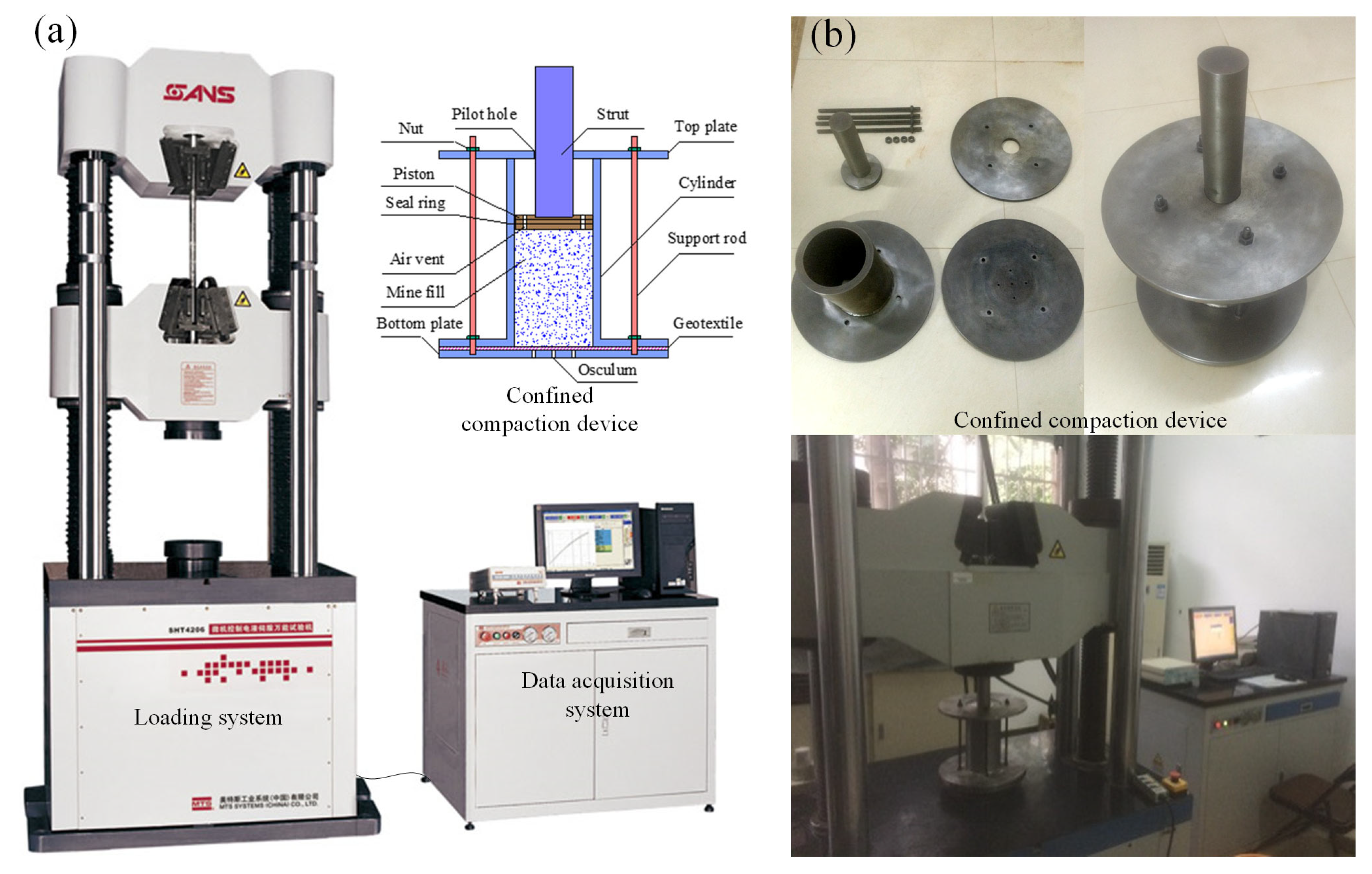 - Zhao, G.Y.; Wu, H.; Chen, Y.; Xu, Z.W.; Li, Z.Y.; Wang, E.J. Experimental study on load-bearing mechanism and compaction characteristics of mine filling materials. J. China Univ. Min. Technol. 2017, 46, 1251–1258+1266. [Google Scholar]