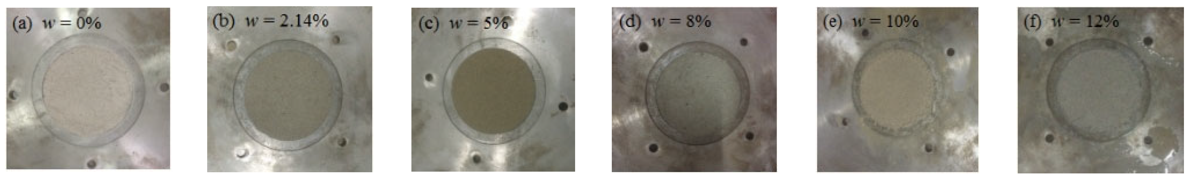 4.4. Compaction Characteristics of Tailings at Different Water Contents