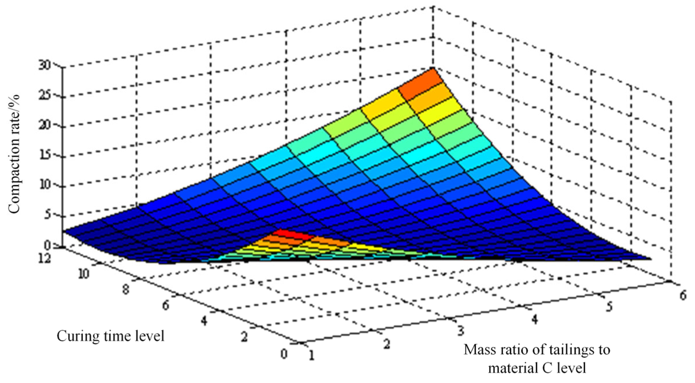 - Compaction tests on the backfill mixture reveal that the compaction rate increases parabolically with the tailings-to-C-material mass ratio. Furthermore, the compaction rate exhibits a non-monotonic relationship with water content, initially increasing before decreasing, while demonstrating a positive correlation with curing time. A significant interaction effect is also observed between water content and curing time.