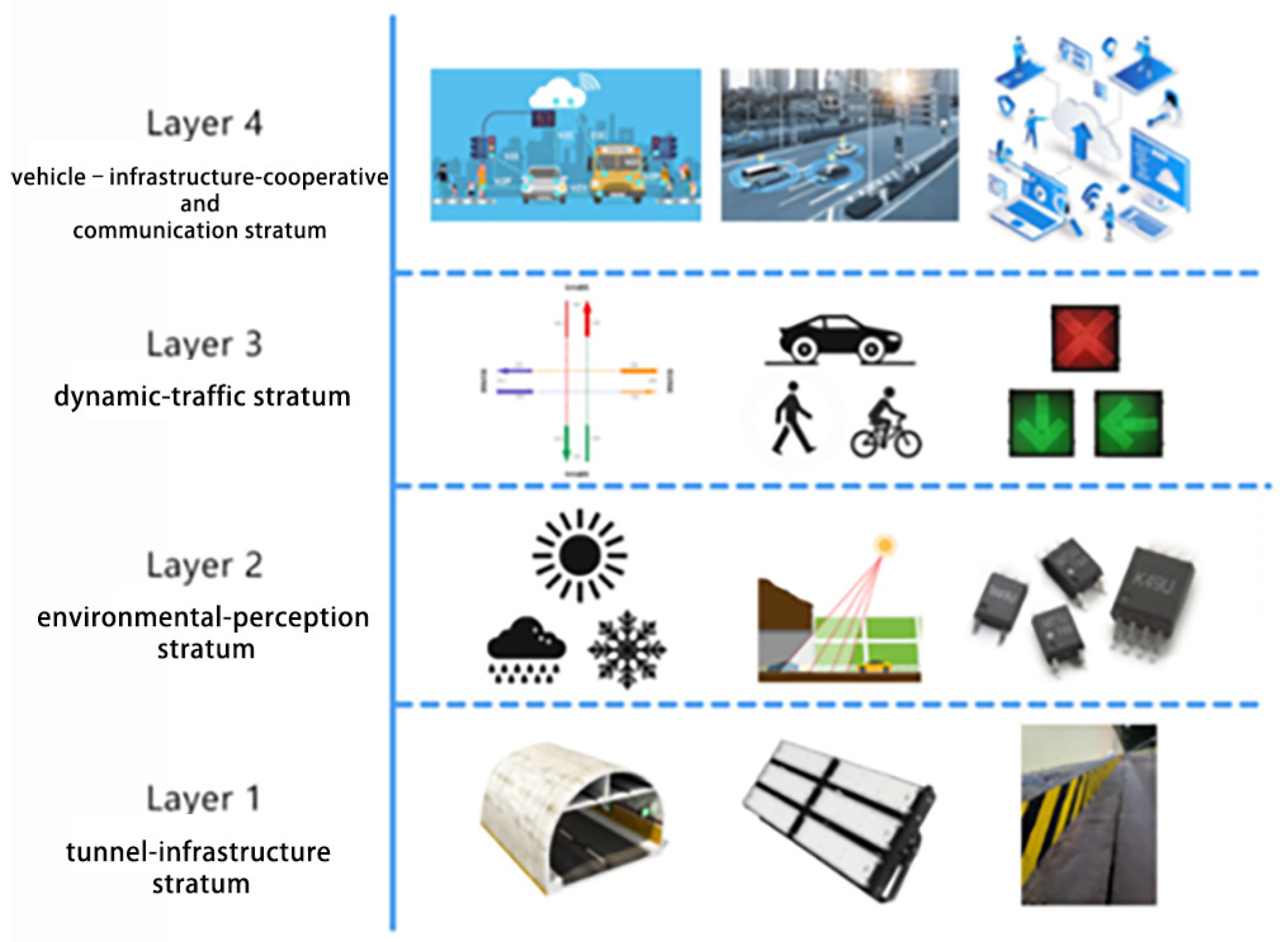 ① Semantic level: Format—8-bit single-channel PNG, values 0–9; 0 represents background, 1–9 correspond sequentially to tunnel portal, traffic sign, traffic marking, signboard, vegetation, structure, car, and motorcycle; resolution consistent with the original image (1024 × 512), using nearest-neighbor interpolation to avoid category aliasing caused by edge anti-aliasing.