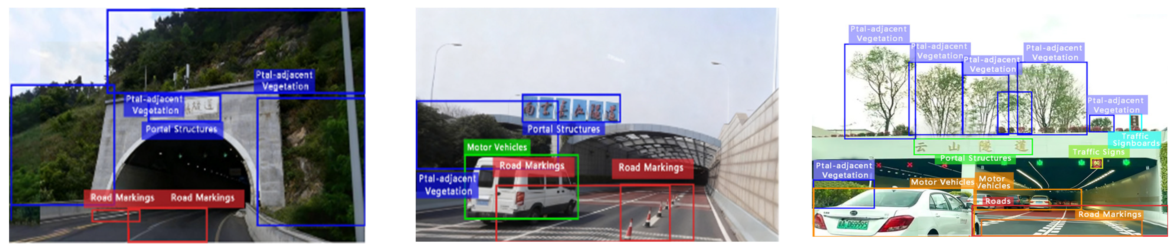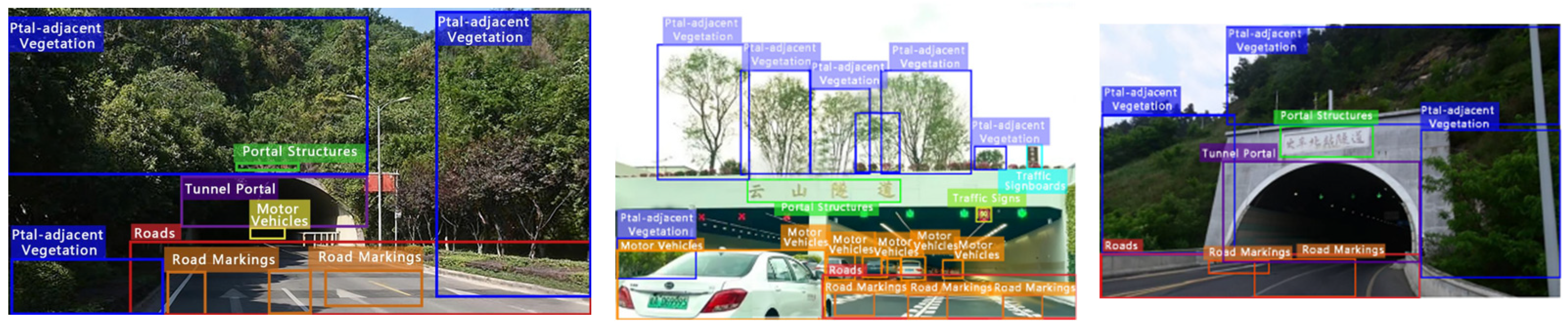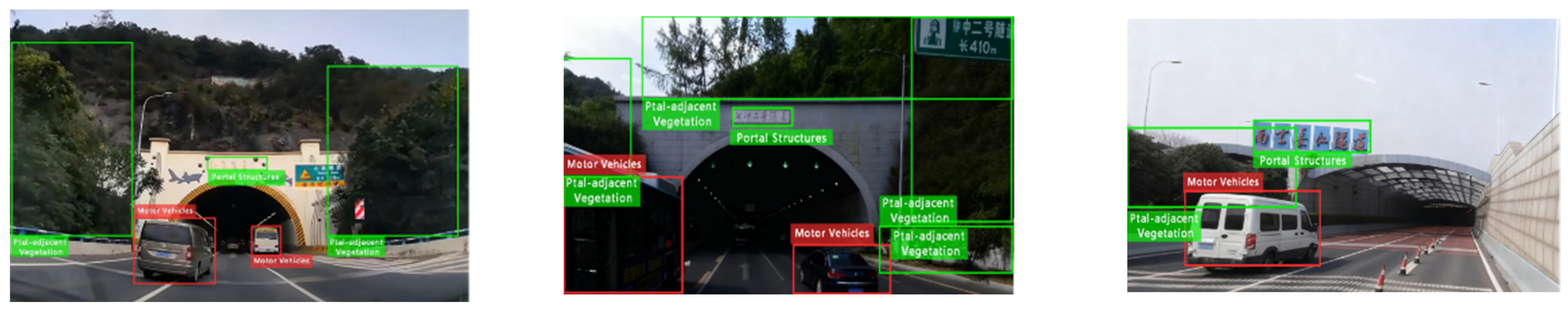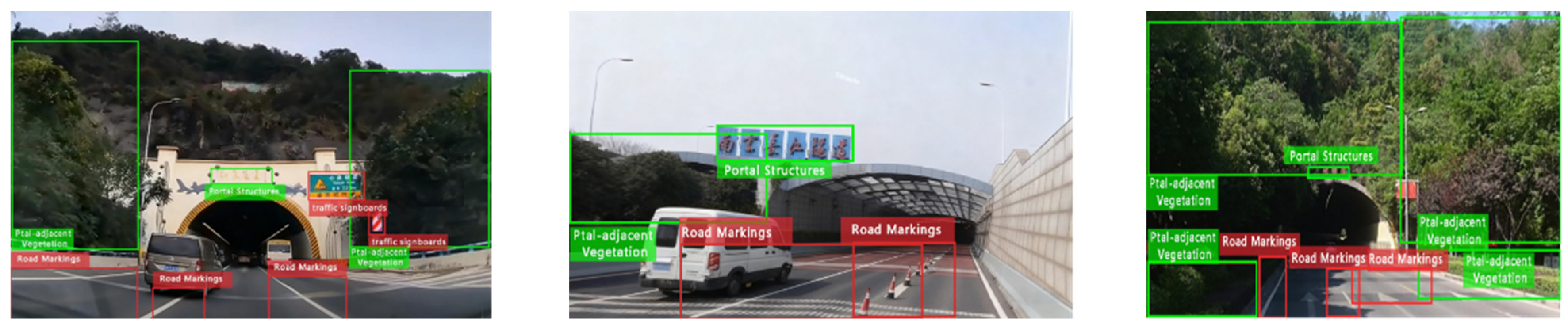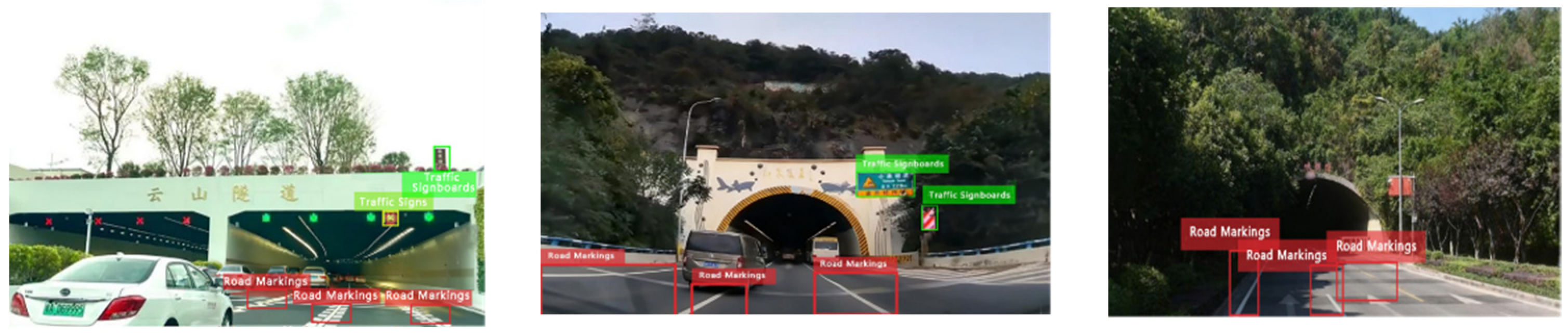 To ensure statistical reliability, all images undergo strict screening in terms of illumination range, motion blur, occlusion, and annotation quality, effectively reducing noise that would otherwise require larger sample sizes. Each of the 48 logical scene combinations is represented by multiple frames collected across different tunnels, and inference latency is measured repeatedly under identical network and hardware configurations.