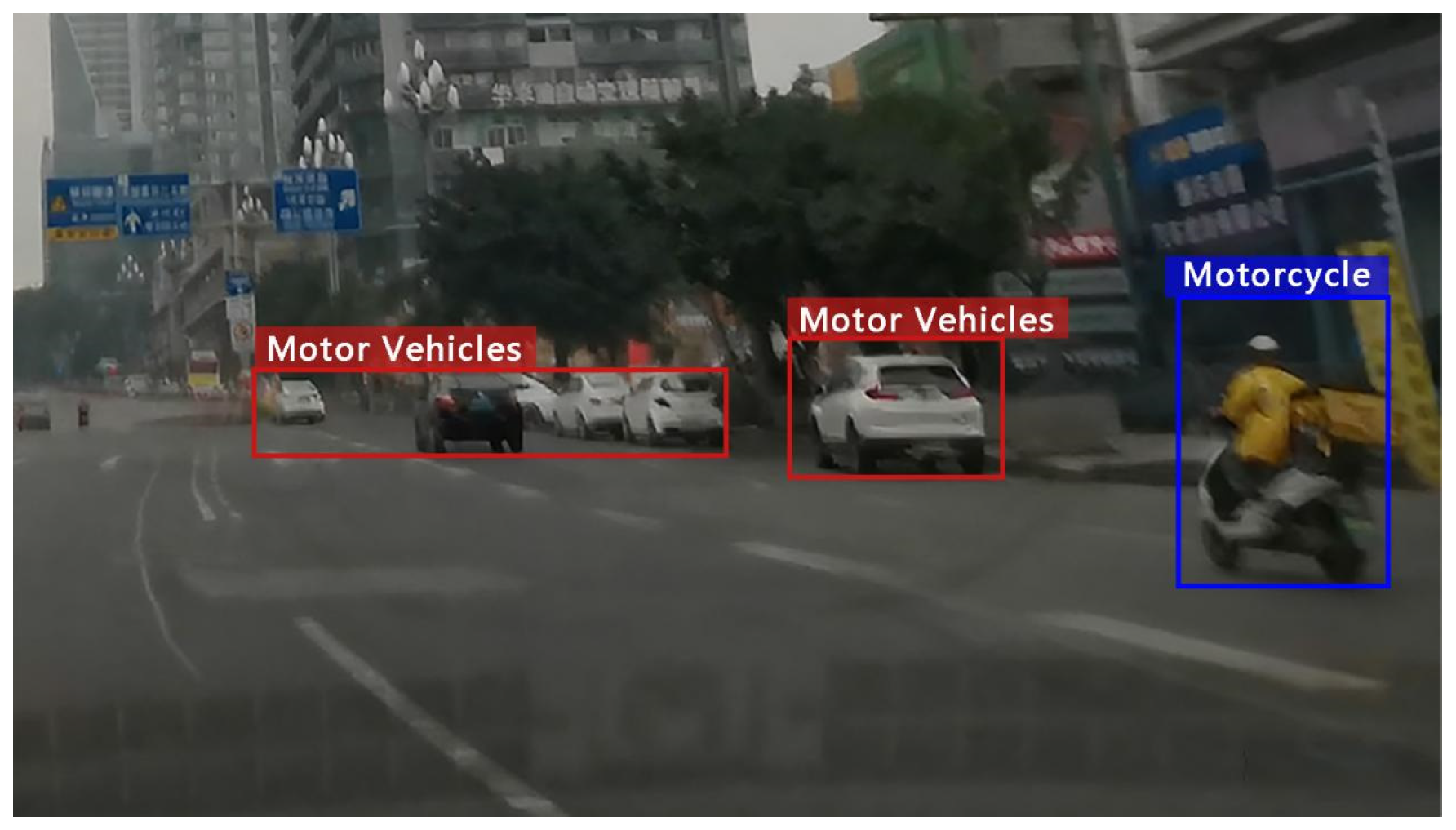 ② Instance level: Unique Instance IDs (starting from 1000 and incrementing) are assigned only to the dynamic elements of “cars” and “motorcycles” to support subsequent validation of instance segmentation model extensions; the ID encoding is written into an independent 16-bit PNG layer, sharing the same filename as the semantic label file but with a different suffix for easy reading and maintenance.
