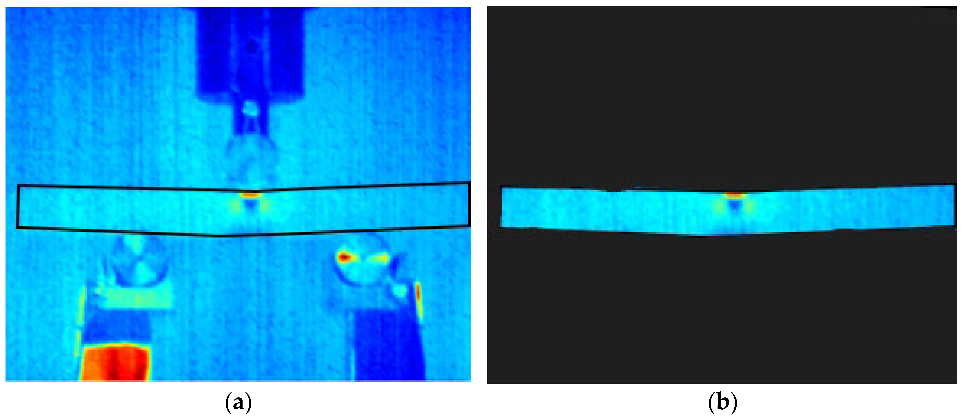 The infrared camera records data in the proprietary FLIR format, and each frame was subsequently exported as an ASCII matrix of temperature values. To ensure that only the specimen region was used for training, a bounding box was created around the specimen based on its visible outline. Everything outside this bounding box was excluded (see