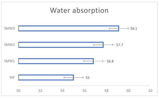 As part of this study, in addition to ash content, the immediate composition of the different flours (SM, WF, and the various compound flours) and the different types of bread (CB, SMWB1, SMWB2, SMWB3, and the improved bread: SMWB10) was determined using the standard methods recommended by the Association of Official Analytical Chemists (AOAC) [28]. The lipid content was determined in accordance with the official AOAC 922.06 method, while the protein content was determined in accordance with the official AOAC 920.87 method. The moisture content was determined according to the official AOAC 925.10 method. The ash content was determined using the ISO No. 2171/2007 method [29]. The carbohydrate content was determined by subtraction: the sum of the percentages of protein, ash, fat, and moisture was deducted from 100%.