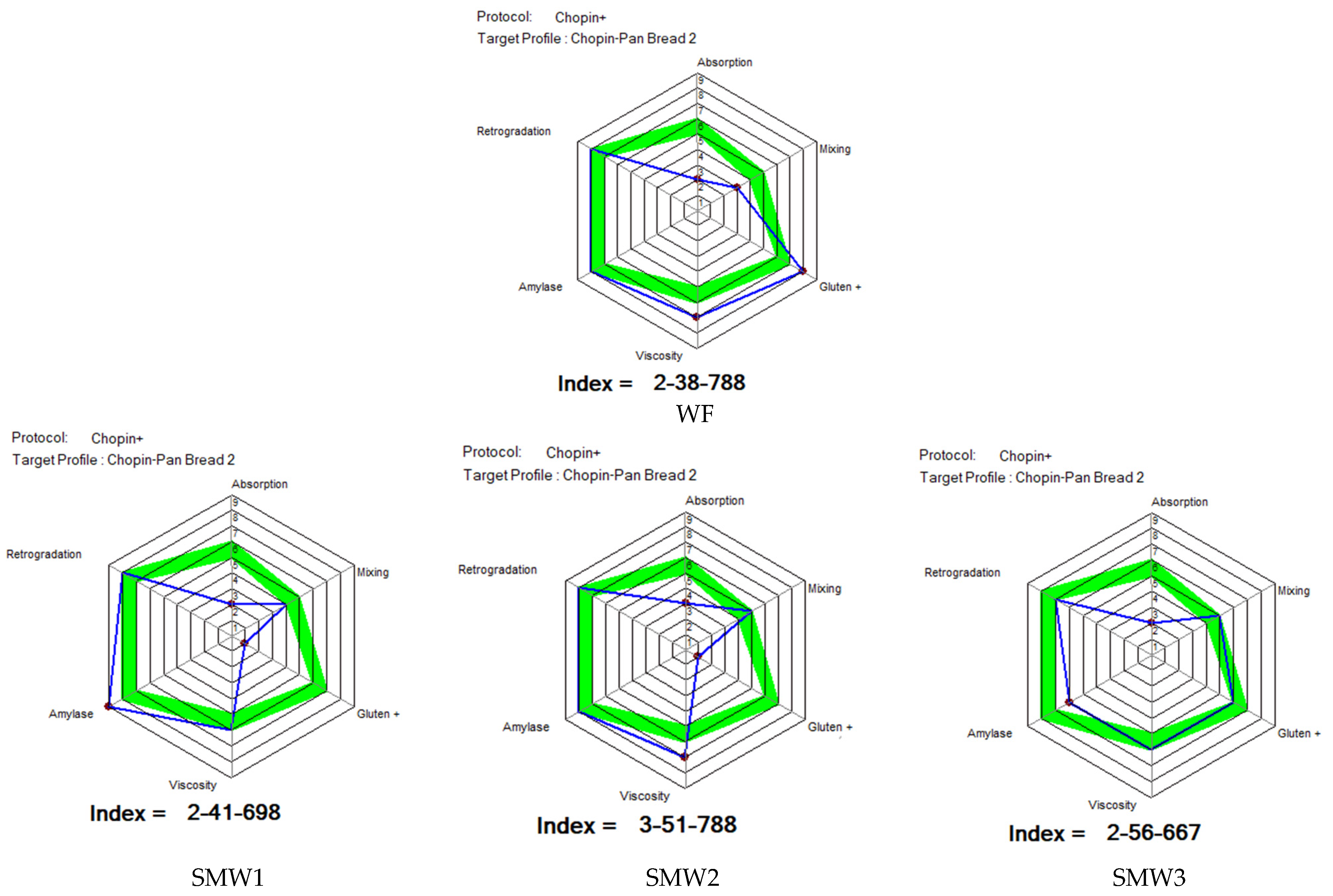 2.3.1. Preparation of Breads with Different Levels of WF Substitution by SM