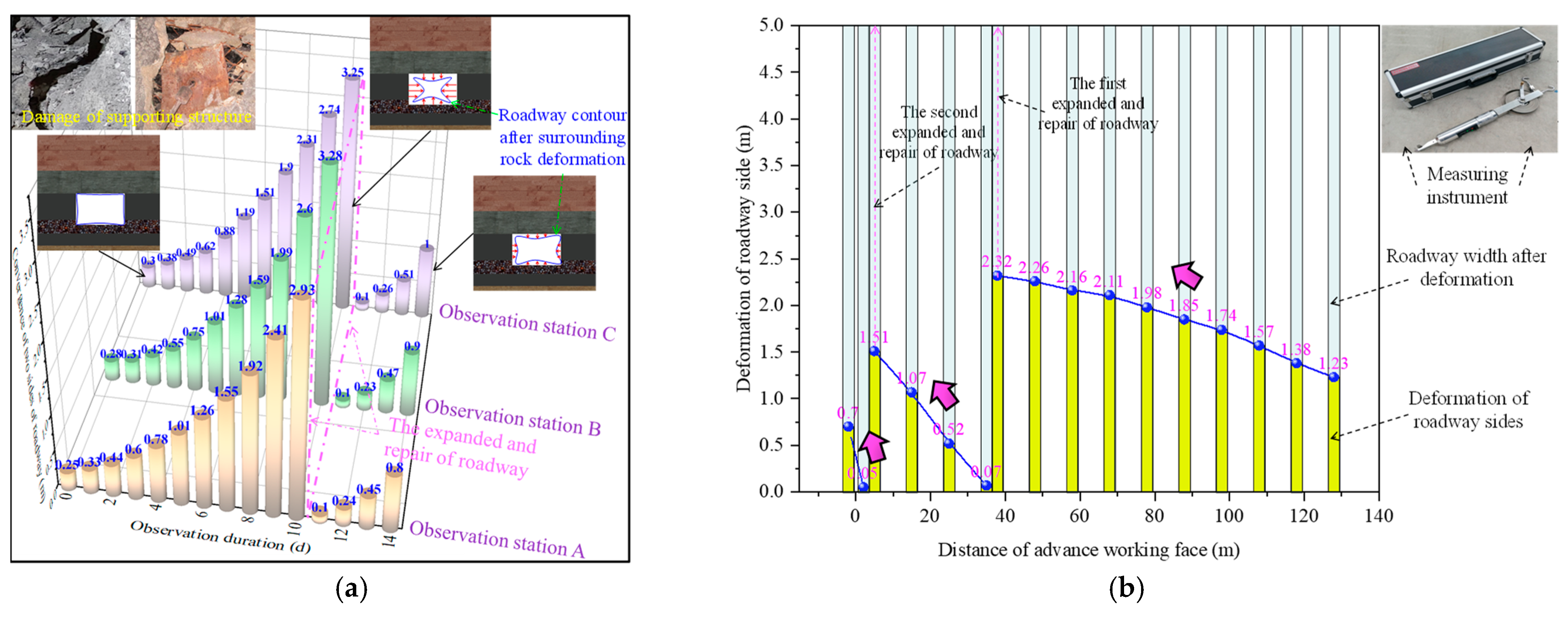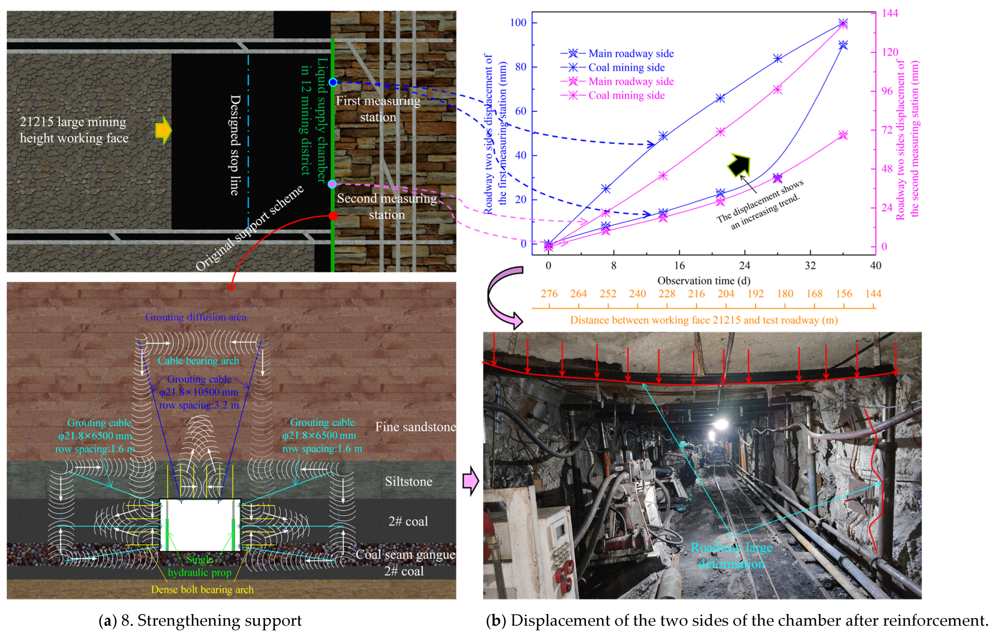 - Wang, W.J.; Yuan, C.; Yu, W.J.; Wu, H.; Peng, W.Q.; Peng, G.; Liu, X.S.; Dong, E.Y. Stability control method of surrounding rock in deep roadway with large deformation. J. China Coal Soc. 2016, 41, 2921–2931. [Google Scholar]