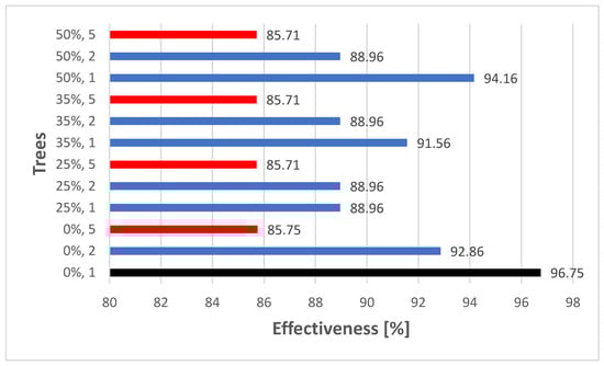Figure 6. Effectiveness of classification trees (black—highest value; red—lowest values; blue—intermediate values).