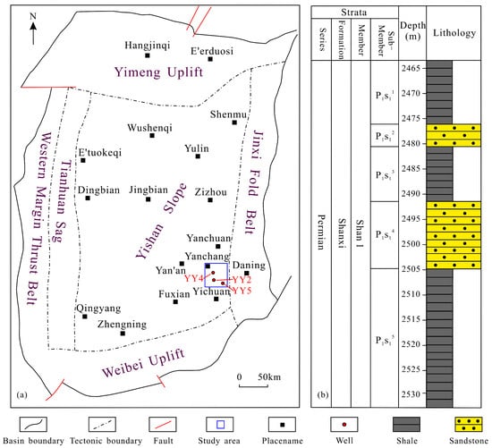 - Niu, X.B.; Yu, J.; Xu, W.L.; Wang, K.L.; Wen, X.Y.; Sun, Y.S.; Zhang, J.Y. Reservoir-forming geological conditions and exploration directions of Upper Paleozoic coal-rock gas in the Ordos Basin. Nat. Gas Ind. 2024, 44, 33–50. (In Chinese) [Google Scholar] [CrossRef]