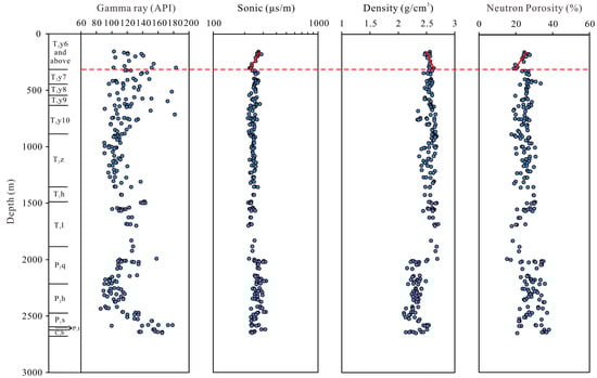 - Lai, J.; Bai, T.Y.; Su, Y.; Zhao, F.; Li, L.; Li, Y.H.; Li, H.B.; Wang, G.W.; Xiao, C.W. Researches progress in well log recognition and evaluation of source rocks. Geol. Rev. 2024, 70, 721–741. (In Chinese) [Google Scholar] [CrossRef]