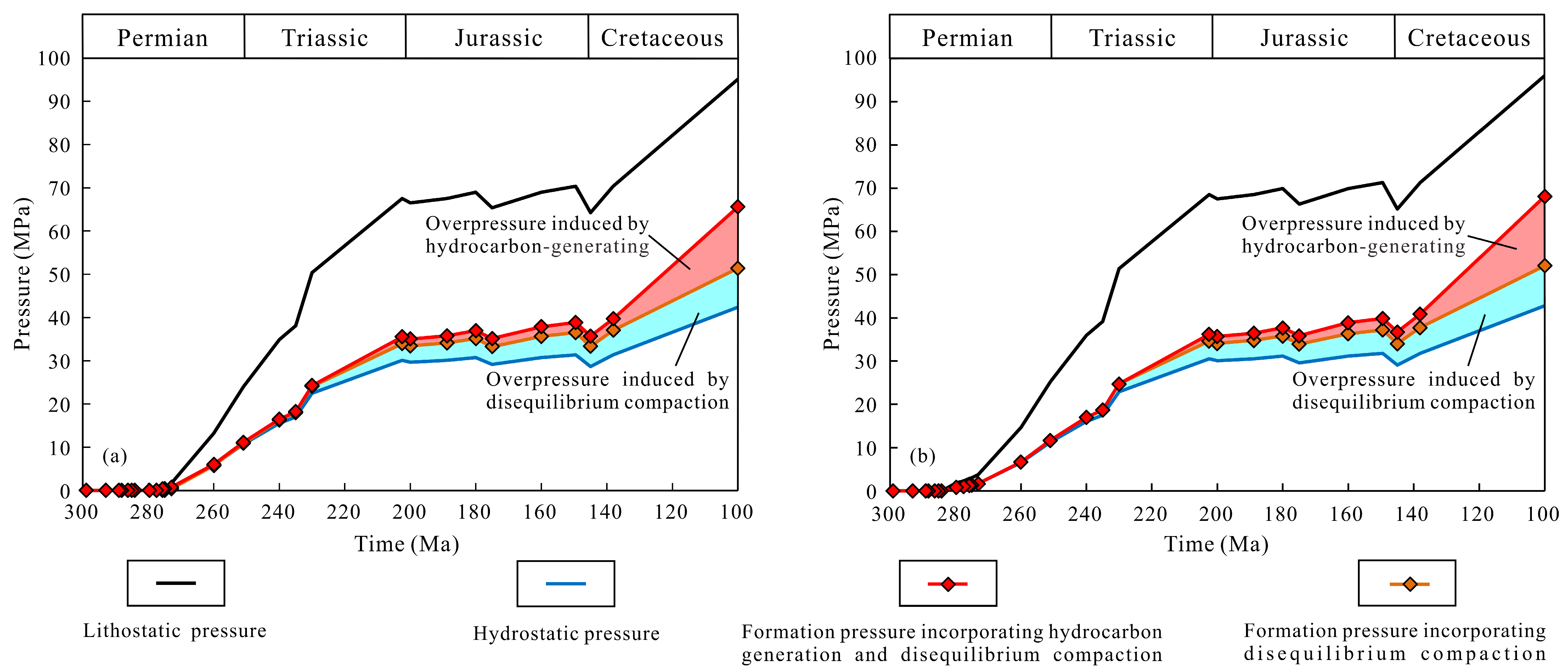 | Well | Sub- Member | Pressure Increase Induced by Disequilibrium Compaction | Proportion of Pressure Increase from Disequilibrium Compaction (%) | Pressure Increase Induced by Hydrocarbon Generation | Proportion of Pressure Increase from Hydrocarbon Generation (%) |