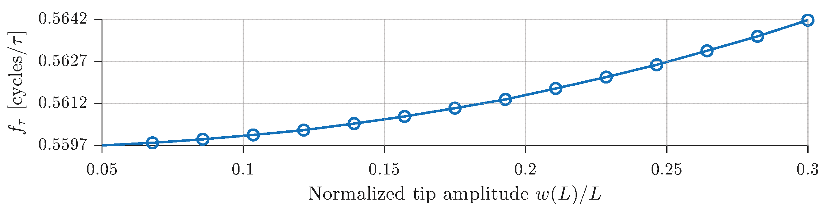 In what follows, the mode shape associated with the first mode is renormalised so that , ensuring that the dimensionless modal coordinate coincides with the dimensionless tip deflection.