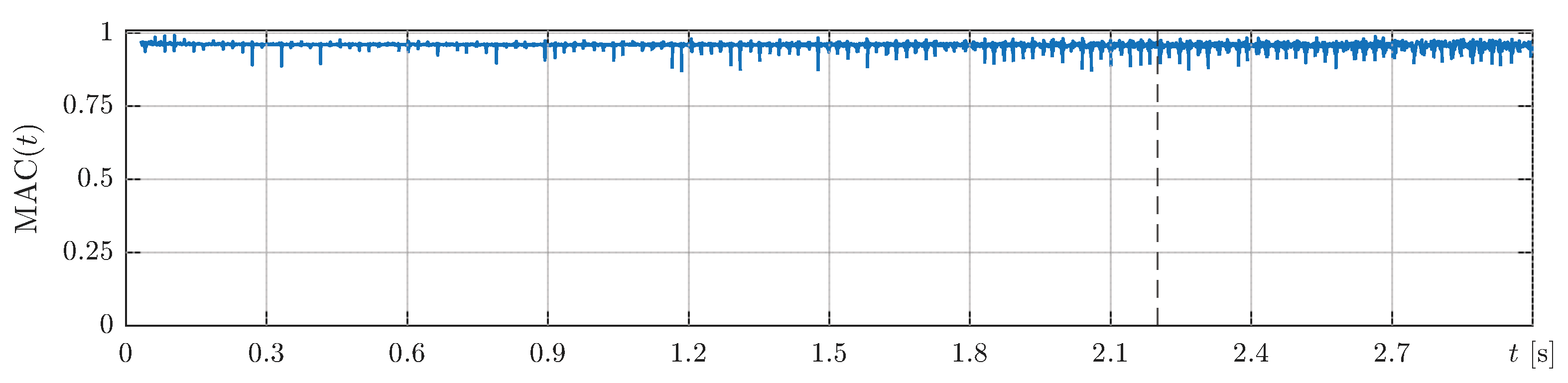 Single-mode Galerkin reduction. Only the fundamental bending mode is retained in the approximation. This choice is motivated by the strong spectral separation of the natural frequencies of a clamped–free beam and by experimental evidence showing that the free vibration response is dominated by the first mode (