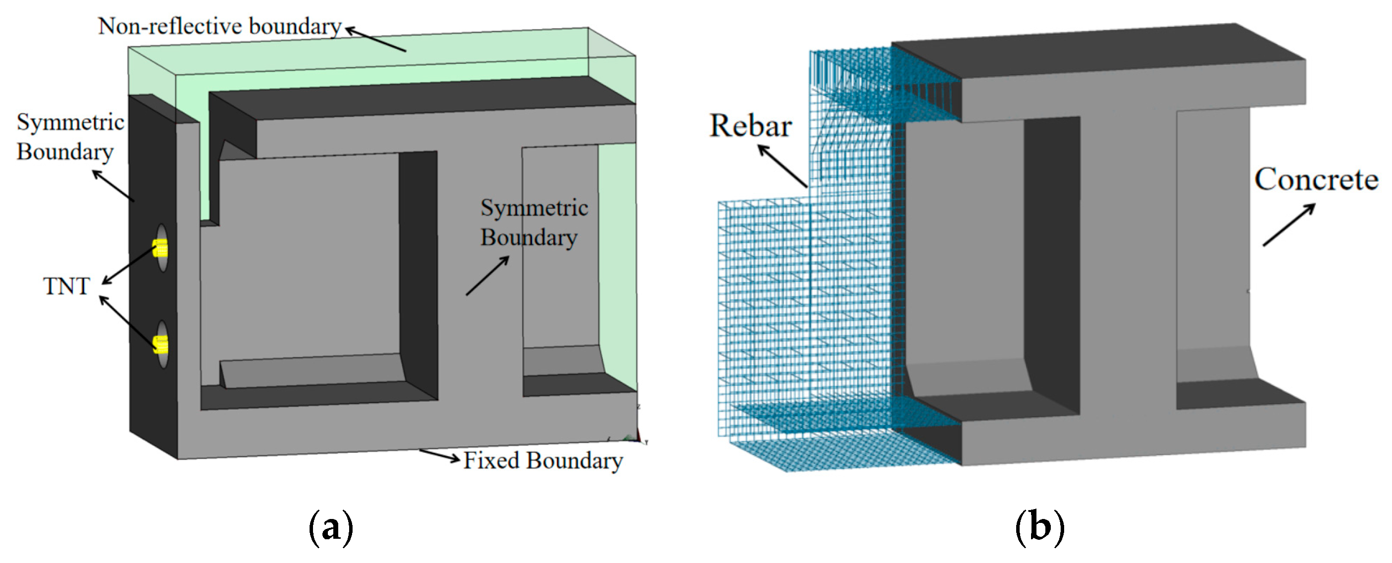 Under internal blast loading, when the explosion wave first impacts the structural surface, a compressive wave is initially generated on the component surface and propagates toward the back face. Because concrete has high compressive strength and is subjected to significant confinement effects, it is difficult for the compressive wave alone to damage the concrete. In contrast, the acoustic impedance of air is much lower than that of concrete; when the compressive wave reaches the back face of the component, it reflects as a tensile wave with nearly the same magnitude as the incident compressive wave, causing tensile damage in the concrete.