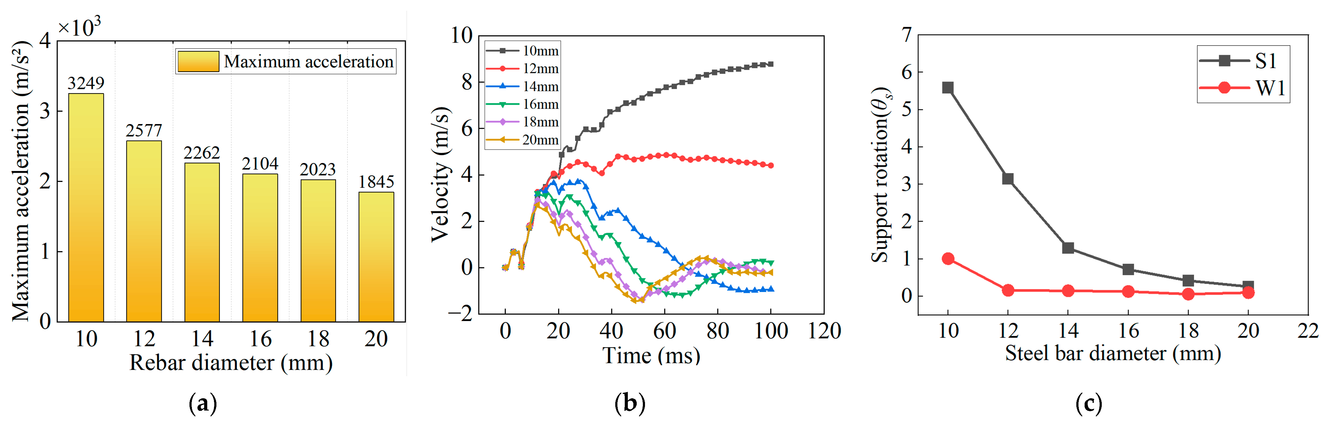Figure 20a, prior to 4 ms, the reinforcing steel has not yet yielded and remains in the elastic stage.
