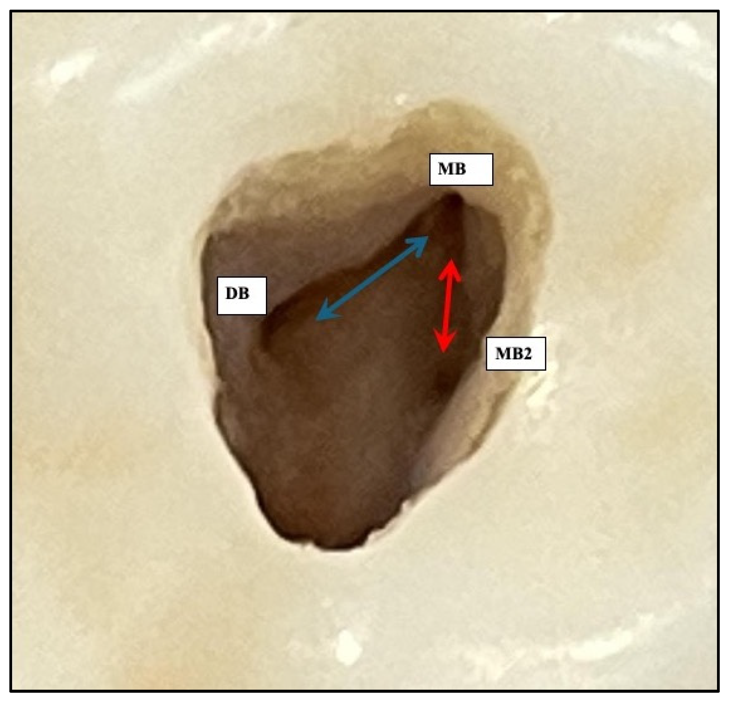 - Mulay, S.; Kadam, G.; Jain, H. Accuracy of various diagnostic aids in detection of MB2 canal in maxillary first molar: In vivo. World J. Dent. 2016, 7, 78–82. [Google Scholar] [CrossRef]