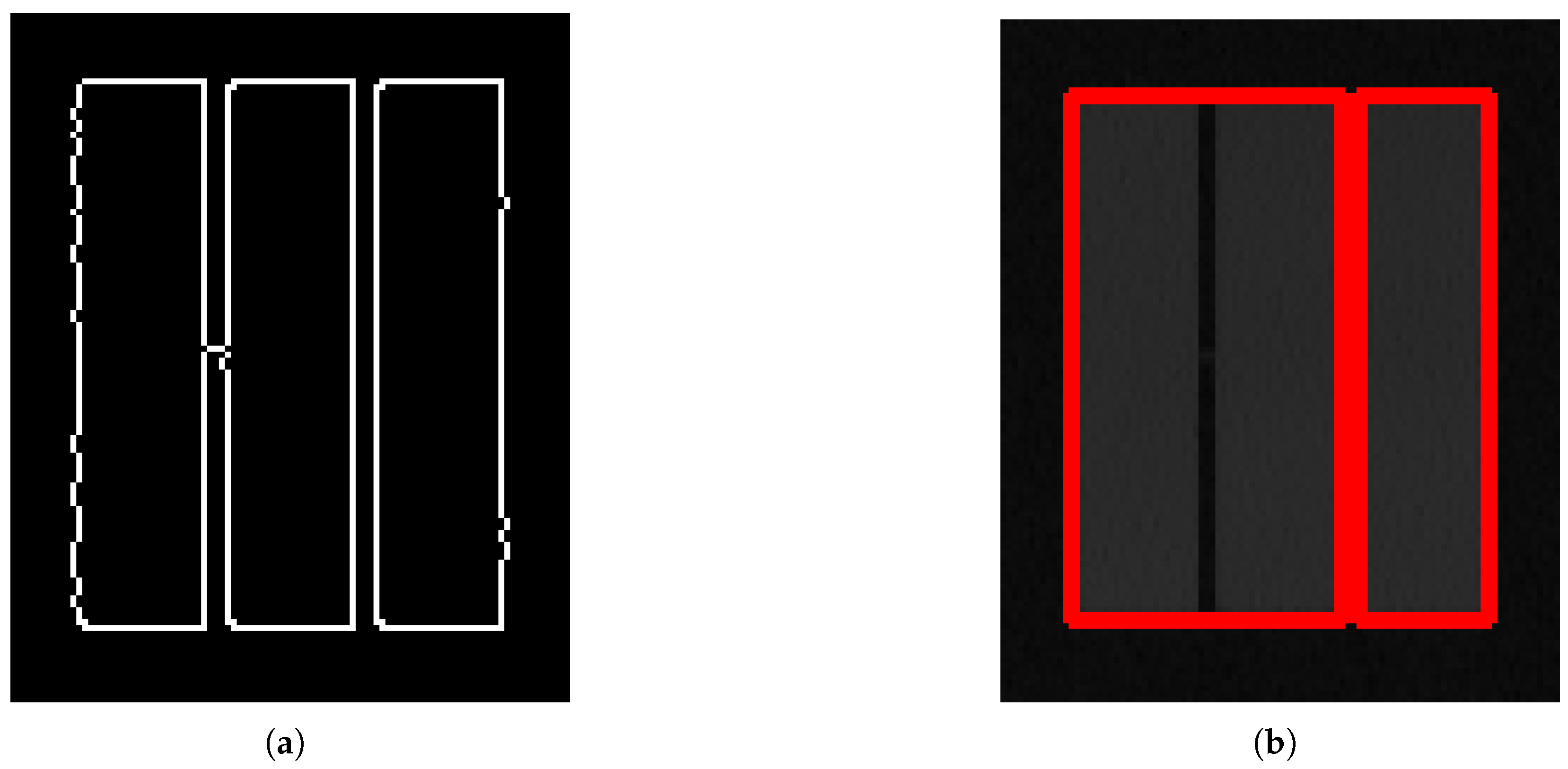 Transmission durations and their bandwidths are estimated based on the width and height of the rectangles’ interiors, respectively. Each unit on the vertical axis corresponds to 100 kHz, while units on the horizontal axis represent a 40 μs raster. Despite applying Gaussian blurring, some residual artifacts or clutter caused by noise or interference may lead to false detections. To mitigate this, lower bounds are established for the transmission dimensions on the spectrogram. Based on observations, it is assumed that a UAV transmission lasts not less than 200 μs and has a bandwidth of at least 500 kHz. Therefore, rectangles smaller than 5 pixels in any dimension are discarded. Additionally, transmissions that are clipped—partially extending beyond the spectrogram—can result in erroneous estimates of duration or bandwidth. To exclude such partially captured transmissions, rectangles with at least one side touching the spectrogram border are also discarded.