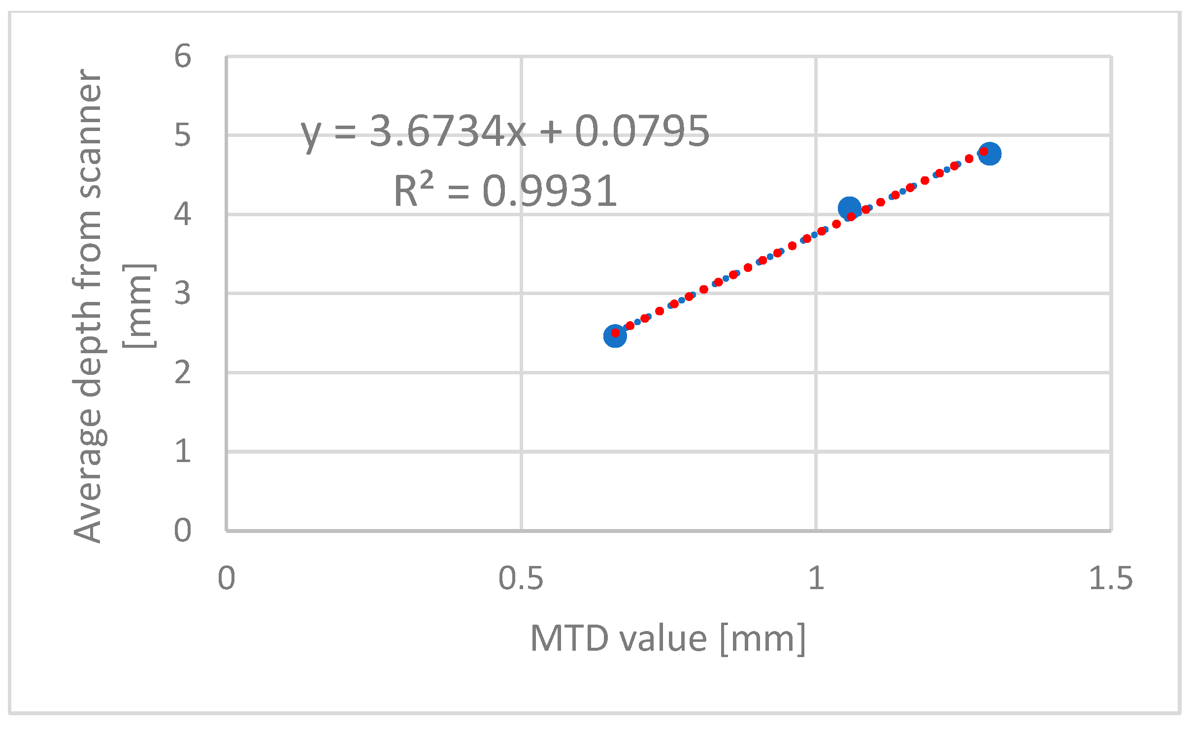 Pavement surface texture plays a crucial role in determining road safety, vehicle operating costs, and environmental impacts, including tire–road noise. The mean texture depth (MTD) and mean profile depth (MPD) are internationally recognized parameters for quantifying pavement macrotexture, which directly influences skid resistance, water drainage capabilities, and overall road performance [