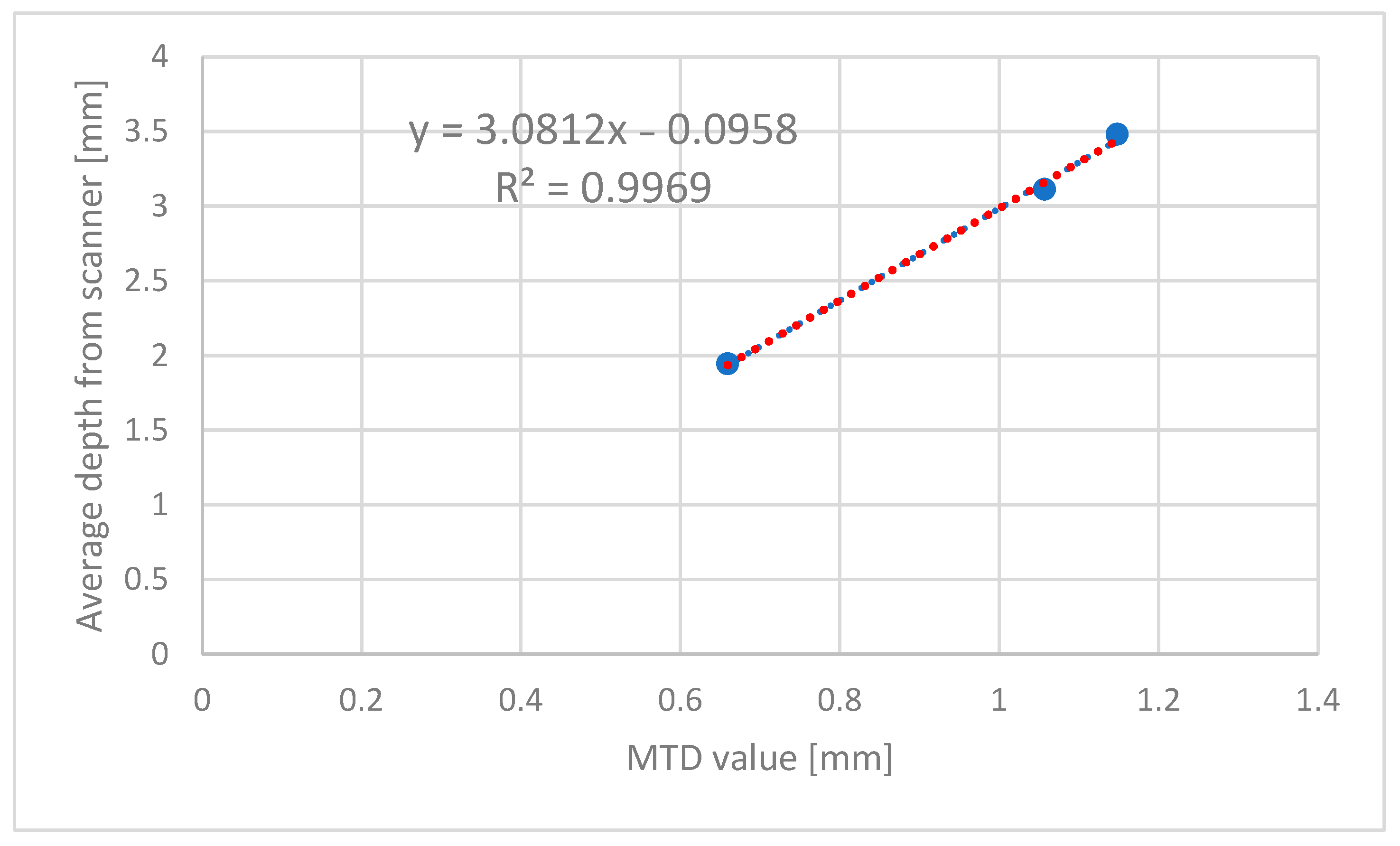 8] explored the integration of mobile laser-scanning systems with inertial measurement units, enabling continuous texture monitoring along roadway networks. Their approach achieved an MPD prediction accuracy of ±0.15 mm compared with stationary reference measurements, representing a significant advancement in network-level pavement management. However, these studies primarily relied on Linear Regression models or simple geometric relationships, potentially overlooking complex texture patterns and their relationship with functional performance. Furthermore, the use of 3D laser scanning still relies on basic calculations and needs improvement [