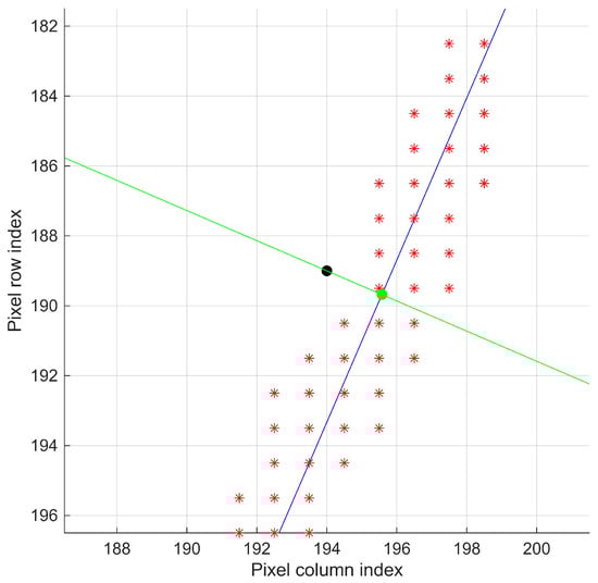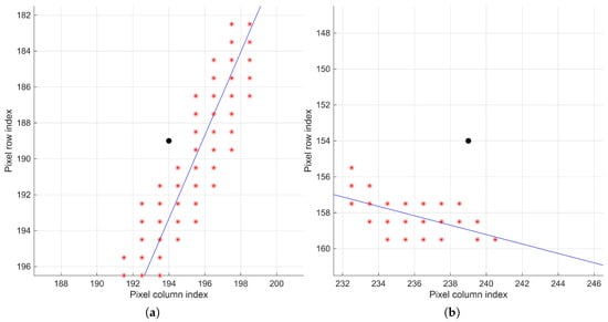 Applying this approach yields two possible line descriptions. One way to select the best approximation is by using the coefficient of determination , as used by Purri and Dana [23], expressed in Equation (8).