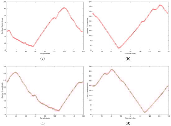 Subsequently, the centroid of each point set was computed to generate the radial signature, defined as the distance from each contour point to the centroid. The comparative analysis of the radial signals obtained from both methods quantifies their differences and provides an estimate of the error between procedures.