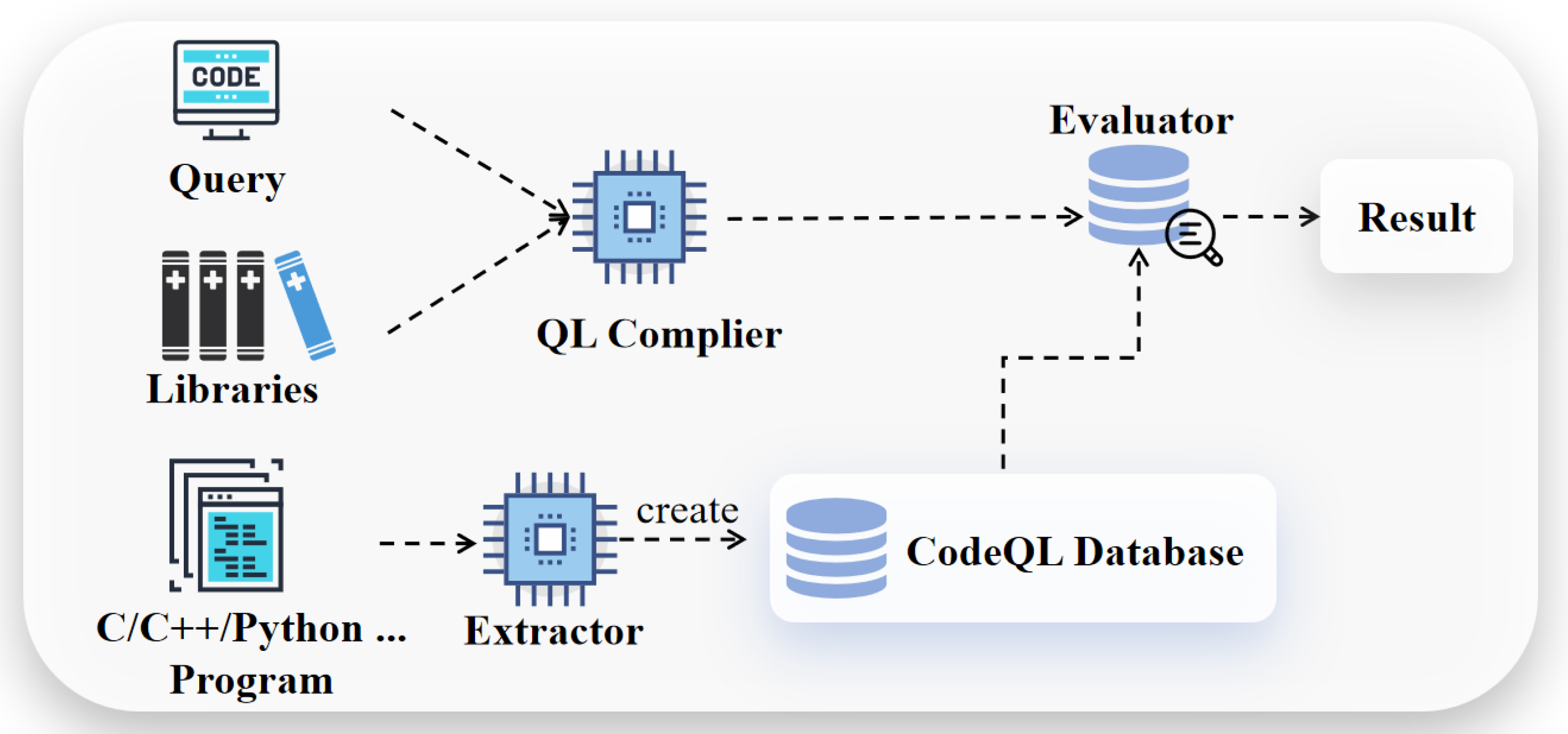 To enhance the accuracy and scalability of static code analysis, researchers have developed numerous analysis tools. Among them, CodeQL is a program analysis engine based on a logical programming language. It works by abstracting source code into a queryable relational database that stores program representations such as the abstract syntax tree (AST) [