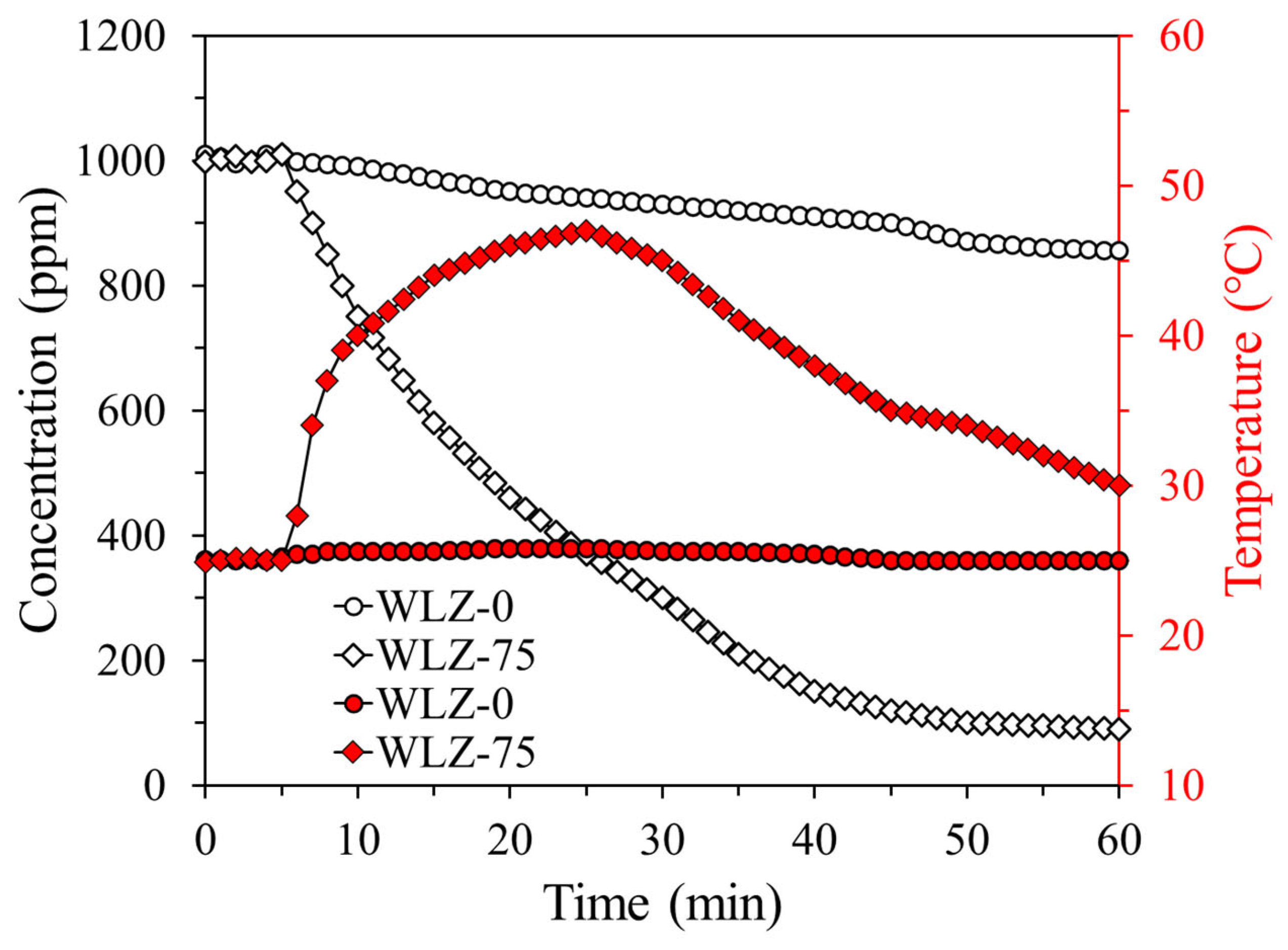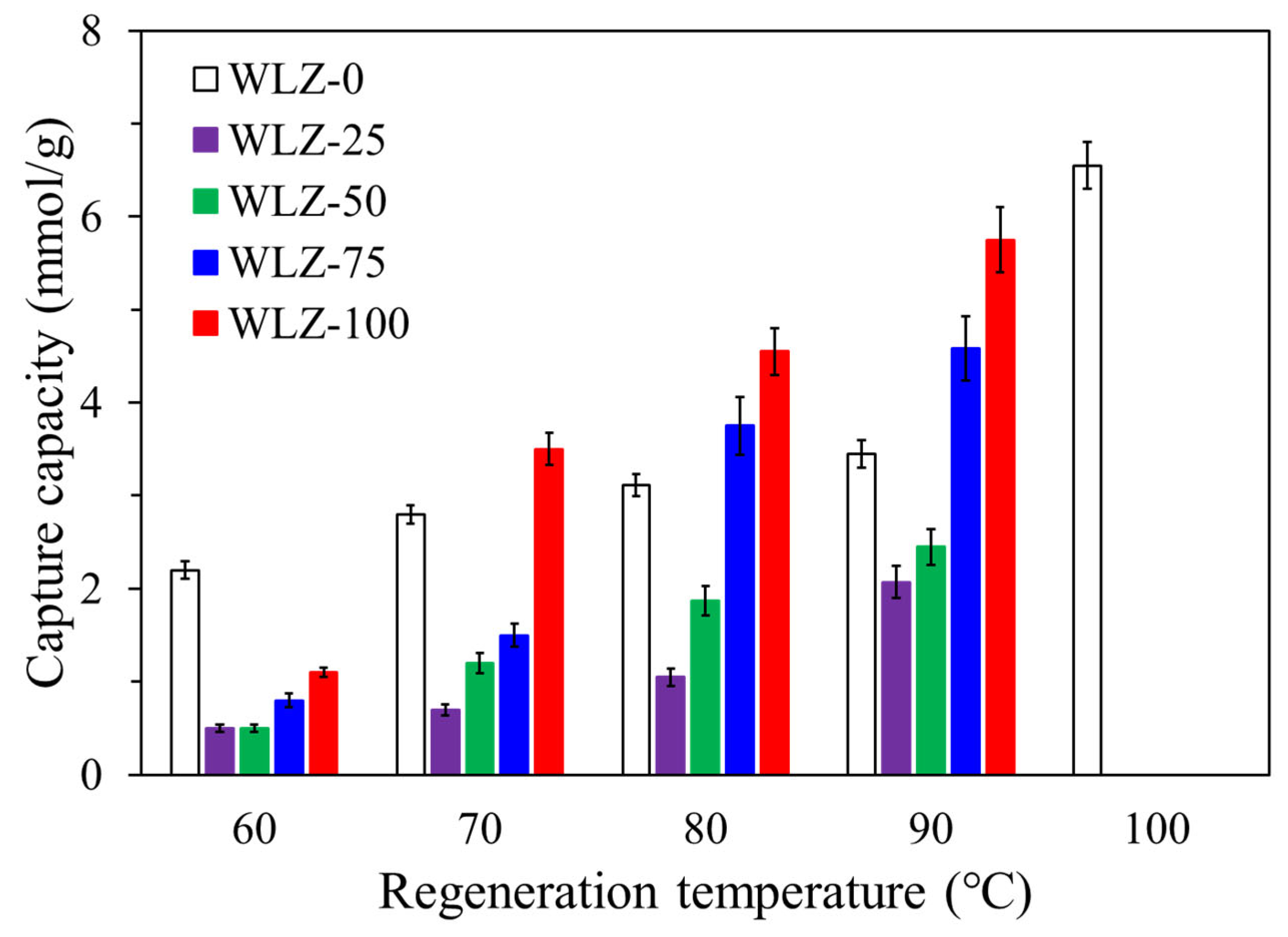 | WLZ-75 | NH3 (~1000 ppm) 65% RH | 6.75 mmol/g | <90 °C | This work |