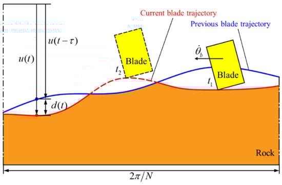 The delay time in Equation (13) is a state-dependent time-delay variable representing the time the previous blade takes to reach the current angular position. This delay time can be calculated using the following implicit function: