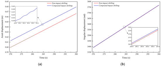 Variation curves of bit displacement in hard rock formation with different drilling methods: (a) Axial displacement; (b) Angular displacement.
