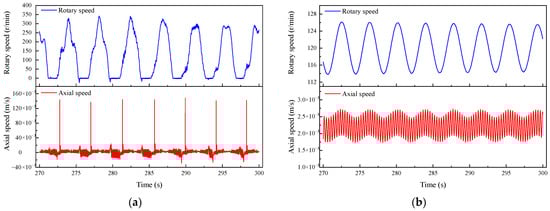 Variation curves of axial speed and rotary speed of bit in hard rock formation with different drilling methods: (a) Non-impact drilling; (b) Compound impact drilling.