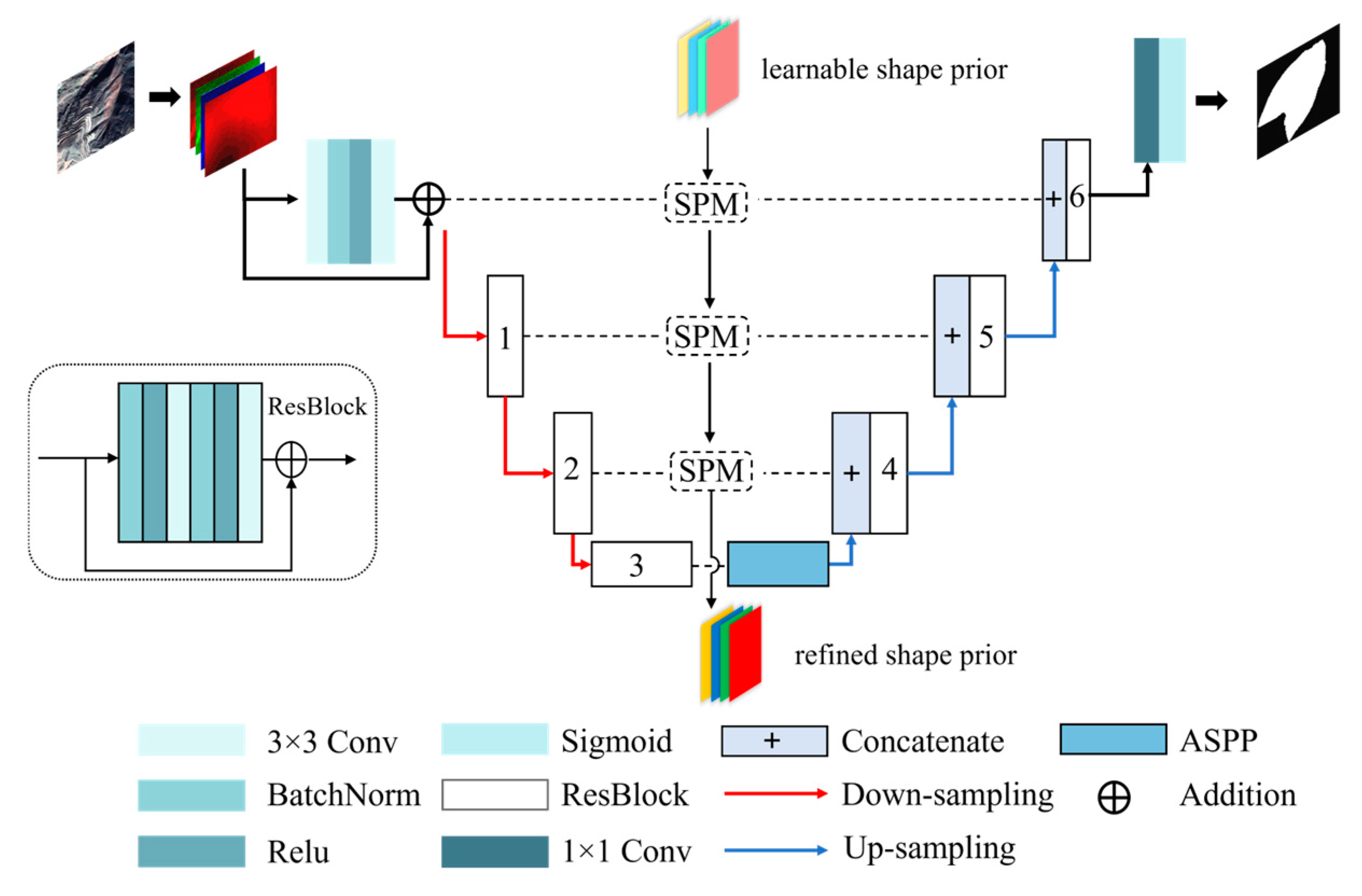 To address these challenges, this study focuses on old landslides in the Loess Plateau and proposes an improved model, ResU-SPMNet, which integrates shape priors and multi-scale features. The principal contributions are as follows: Firstly, a shape prior module is introduced [